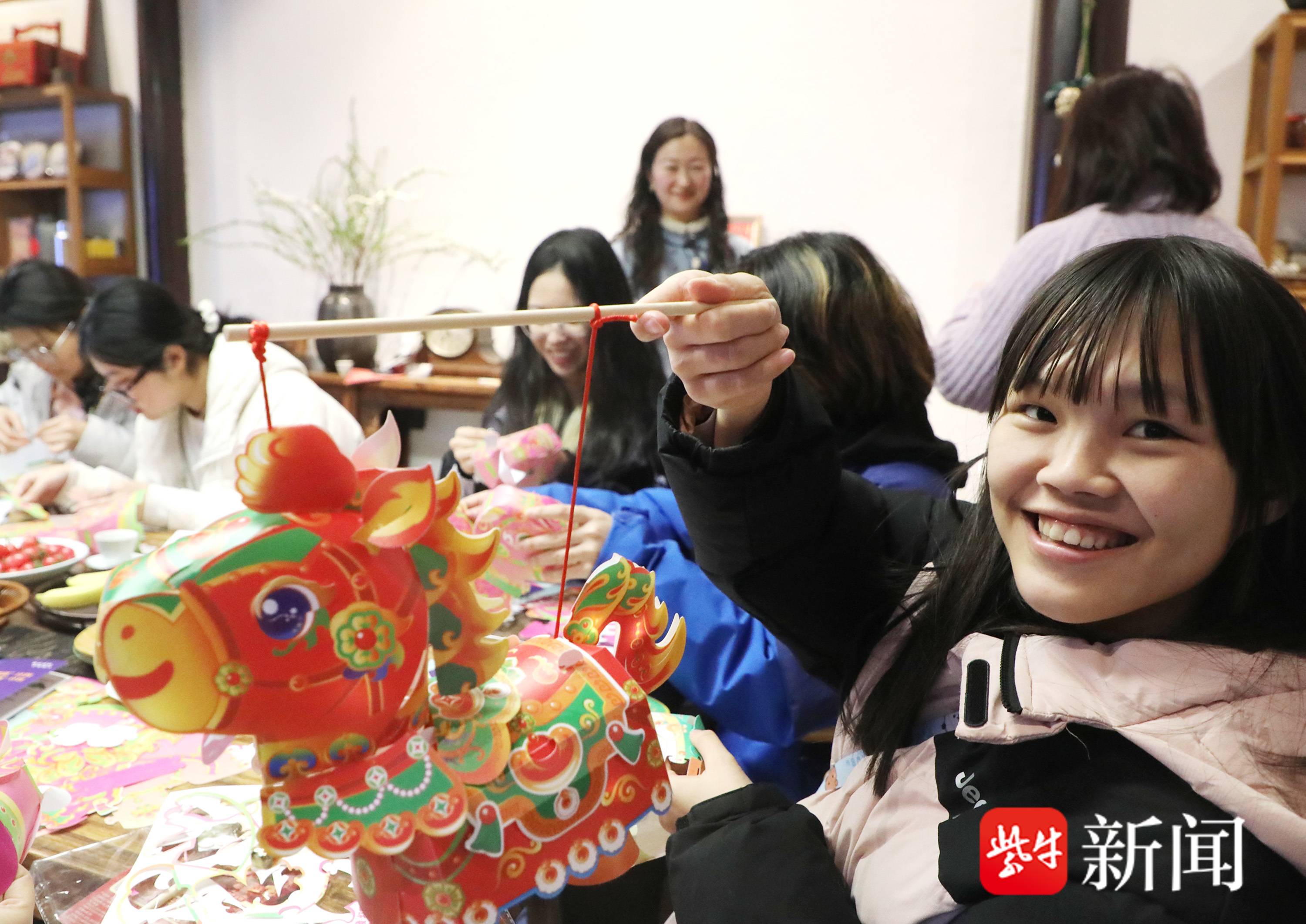 移步至古街的静怡茶书院,围炉煮茶间,政策解读变得轻松可触。人才专员围绕大学生普遍关注的政策要点进行解读,并现场答疑解惑,互动问答环节气氛热烈。现场,同学们亲手制作“马年新春灯笼”,在“政策温度”与“年俗温度”的交织中,“此心安处是镇江”的归属感悄然生长。