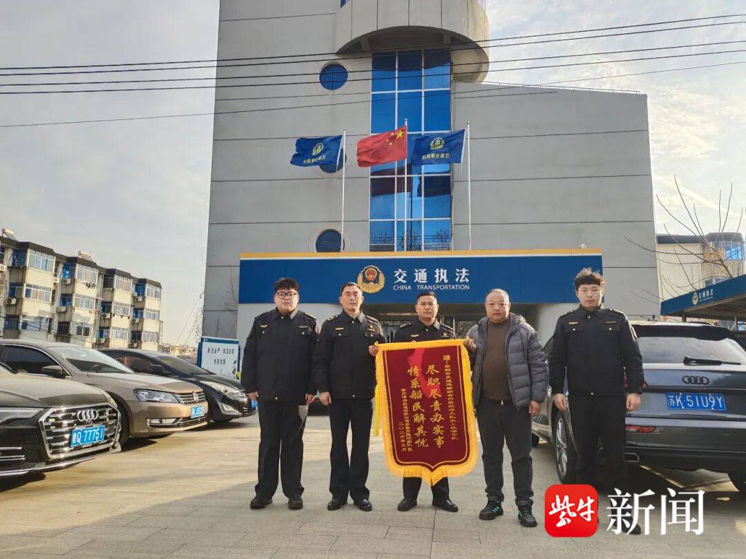 经过数小时的紧张奋战,在交通部门的协调指挥下,沉船被顺利打捞出水,并拖至安全水域。1月12日上午,船主给水上中队执法人员送上写有“尽职尽责办实事,情系船民解其忧”字样的锦旗。