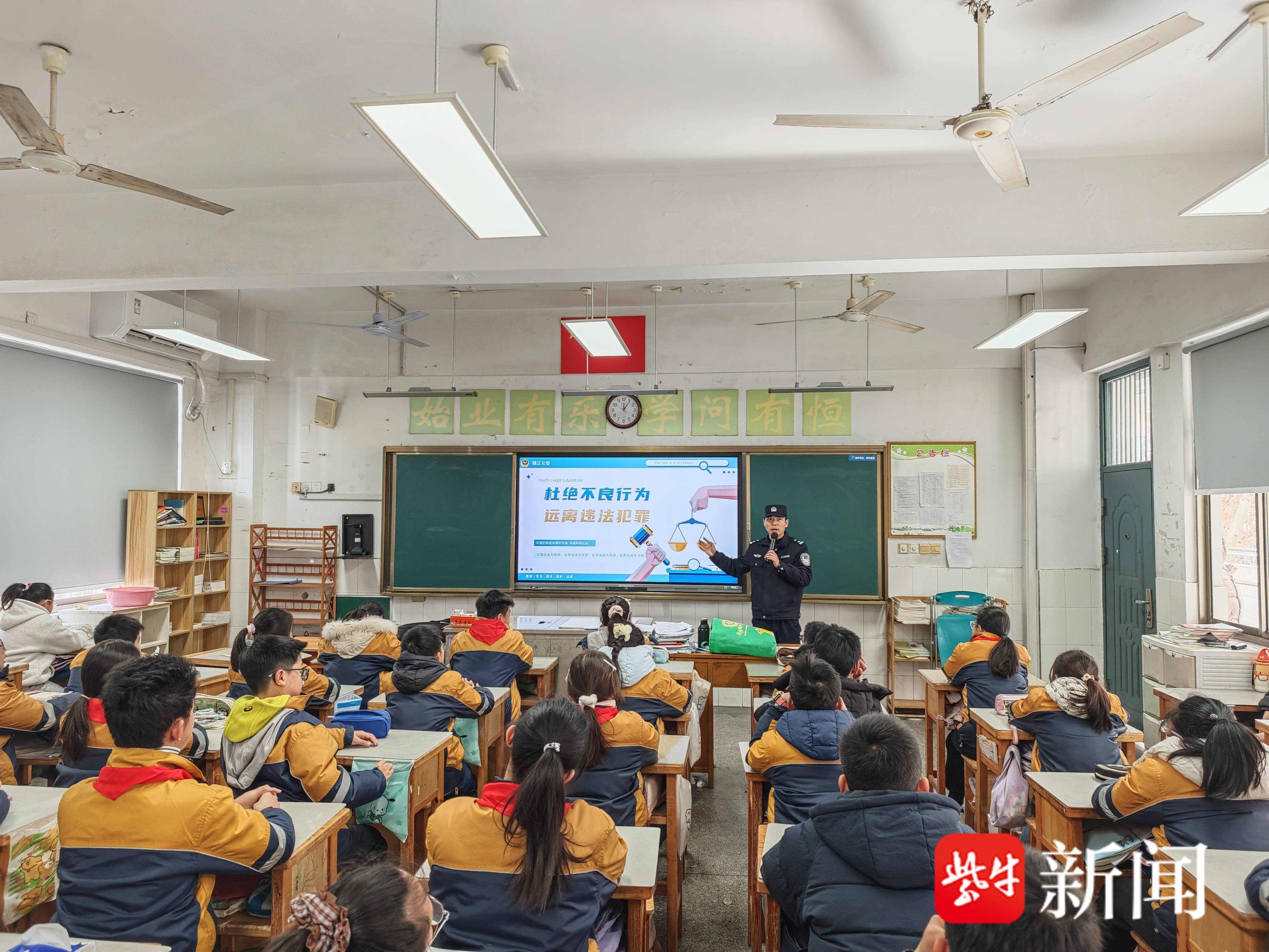扬子晚报网1月14日讯(通讯员 李明鉴 记者 万凌云 姜天圣)1月12日,镇江市实验小学六(12)班迎来了小学阶段的“最后一堂法治课”,特邀该班学生的“警察爸爸”前来开讲,为该班学生送来一堂学法知法守法知识课堂。