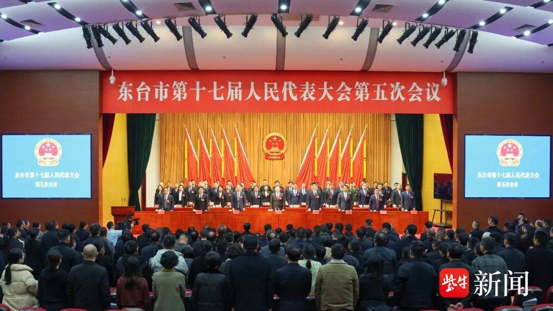1月15日下午,东台市第十七届人民代表大会第五次会议圆满完成各项议程后胜利闭幕。东台市委书记李杰讲话,新当选的东台市人民政府市长胥亮亮发表任职讲话。