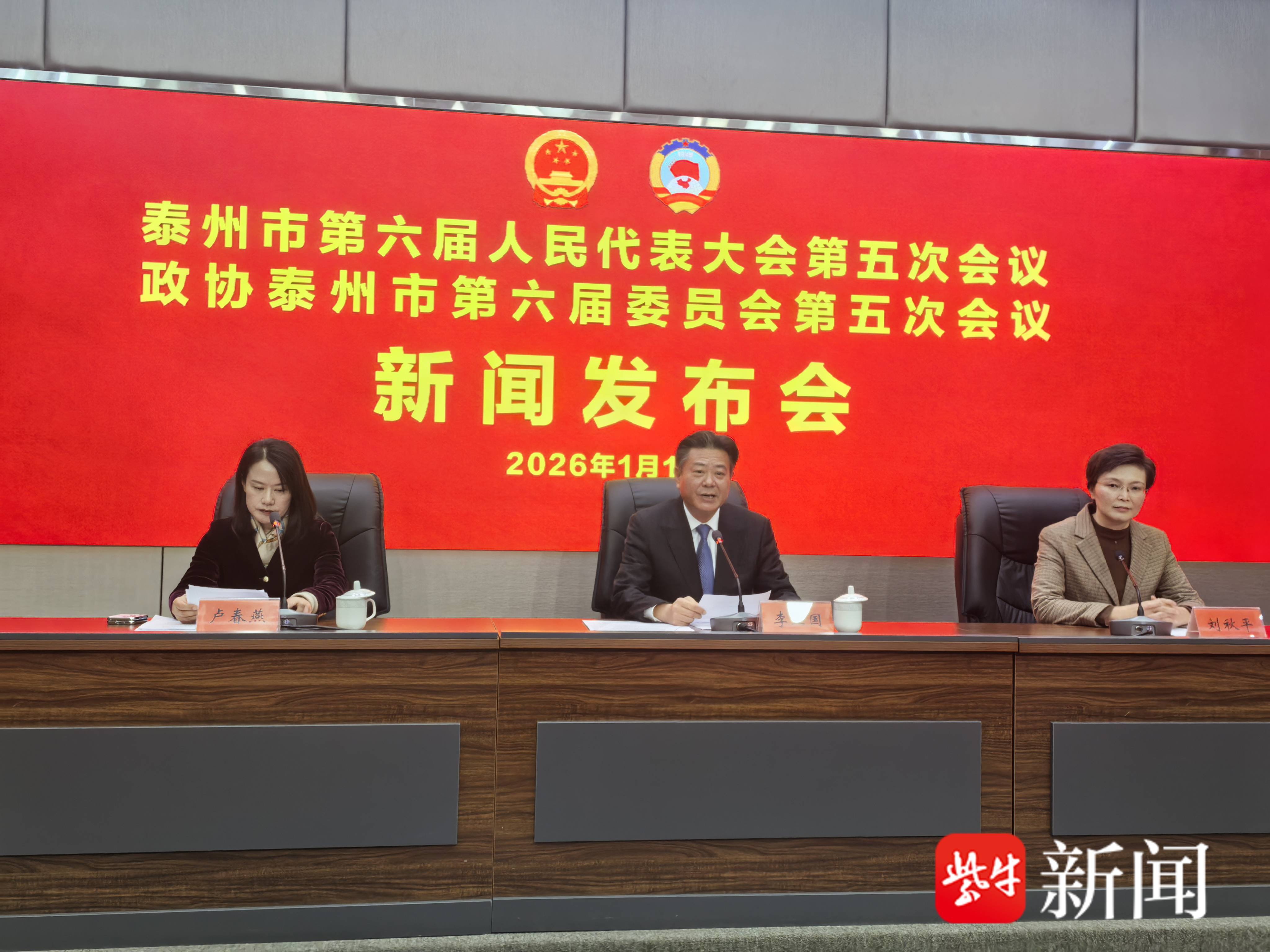 扬子晚报网1月16日讯 (通讯员 单友健 李靓靓 记者 王国柱)1月15日下午,泰州市召开2026年“两会”新闻发布会,泰州市人大常委会秘书长李卫国、泰州市政协秘书长刘秋平分别通报泰州市第六届人民代表大会第五次会议、中国人民政治协商会议泰州市第六届委员会第五次会议有关筹备情况及会议安排。