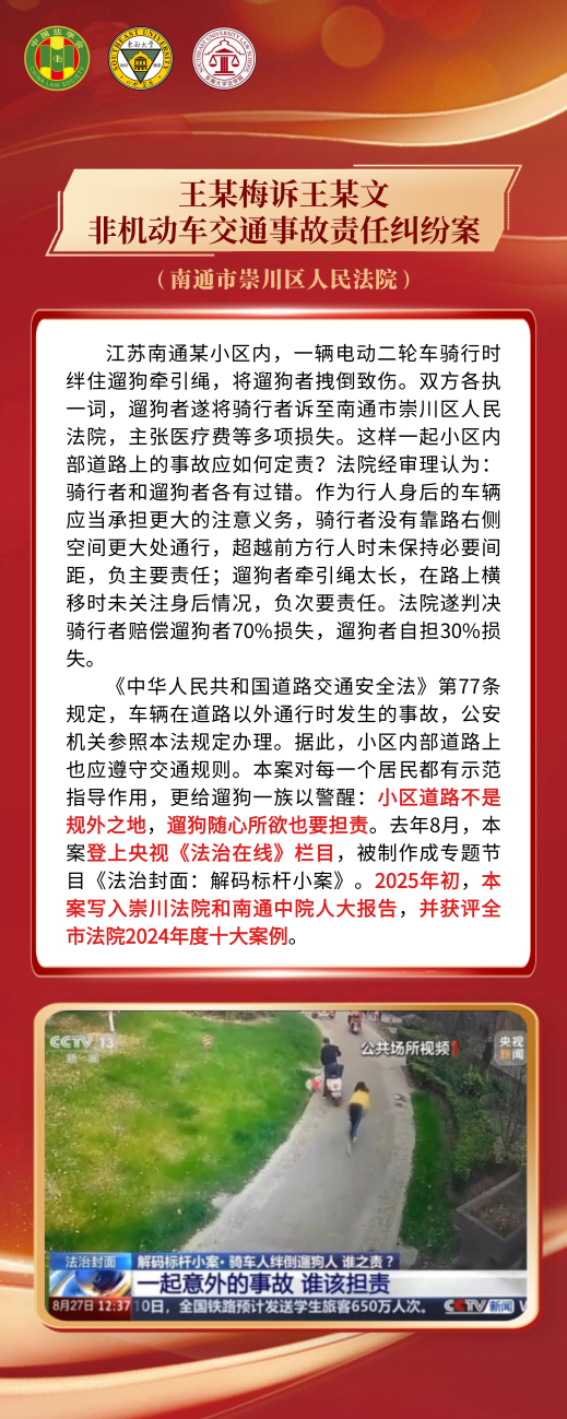 在一起非机动车交通事故责任纠纷中,法院将交通规则与责任认定的适用范围明确延伸至小区内部等非公共道路。该判决对骑行者与遛狗人在此类场景下的注意义务进行了合理划分,强调了个人行为自由的边界。
