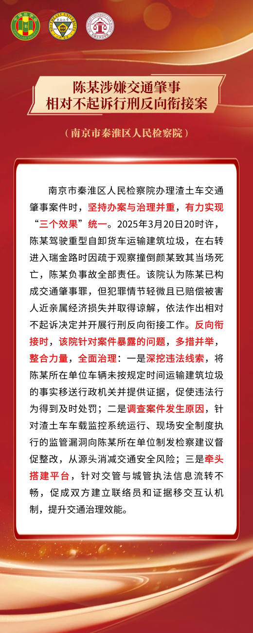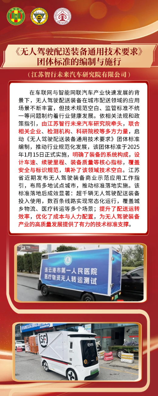 “陈某涉嫌交通肇事相对不起诉行刑反向衔接案”是“行刑衔接”机制的具体实践。检察机关作出不起诉决定后,通过移送行政违法线索、制发检察建议,推动了对渣土车行业的源头治理。此外,《无人驾驶配送装备通用技术要求》团体标准的编制与施行作为唯一入选的非诉讼案例,展现了以标准引领新兴产业发展的治理思维,为未来立法与监管积累了实践经验。