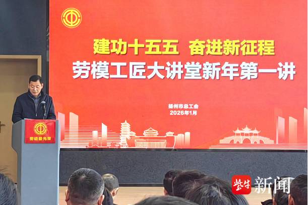 扬子晚报/紫牛新闻记者1月19日从扬州获悉,“建功十五五 奋进新征程”劳模工匠大讲堂新年第一讲,1月16日在市工人文化宫举行。2025年度江苏省五一劳动奖章获得者及劳模工匠代表,观摩了扬州劳模工匠馆和陈万庆劳模创新工作室,交流了奋斗故事。全国劳模、江苏欣喜水产负责人戴大喜分享了跨界融合的新探索——携手新霖飞集团打造“渔光一体”生态循环农业示范区,通过“板上发电、板下养虾”走出一条产业振兴与共同富裕新路。