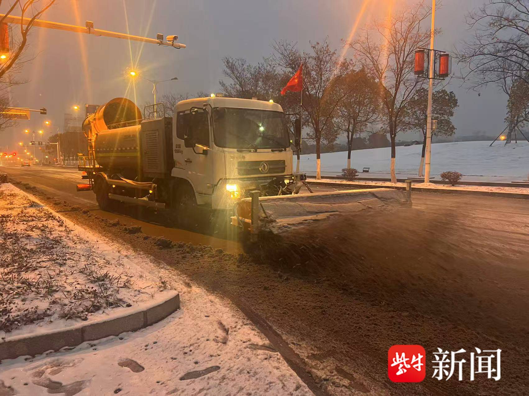 雪情就是命令!根据除雪防冻工作部署会要求,镇江市环境卫生管理服务中心(以下简称“市环卫中心”)于19日下午完成除雪车辆和人员集结。19日晚20时多,天空开始飘起零星小雪,市环卫中心迅速启动除雪防冻应急预案,针对高架、桥梁、涵洞等地段易结冰的特点,21时撒布机开始提前行动,对九华山路高架桥、解放路高架桥、七里甸铁路桥、北府路高架桥等59处桥梁、道路抛洒融雪剂,防范路面出现积雪结冰隐患,为后续除雪作业奠定坚实基础。