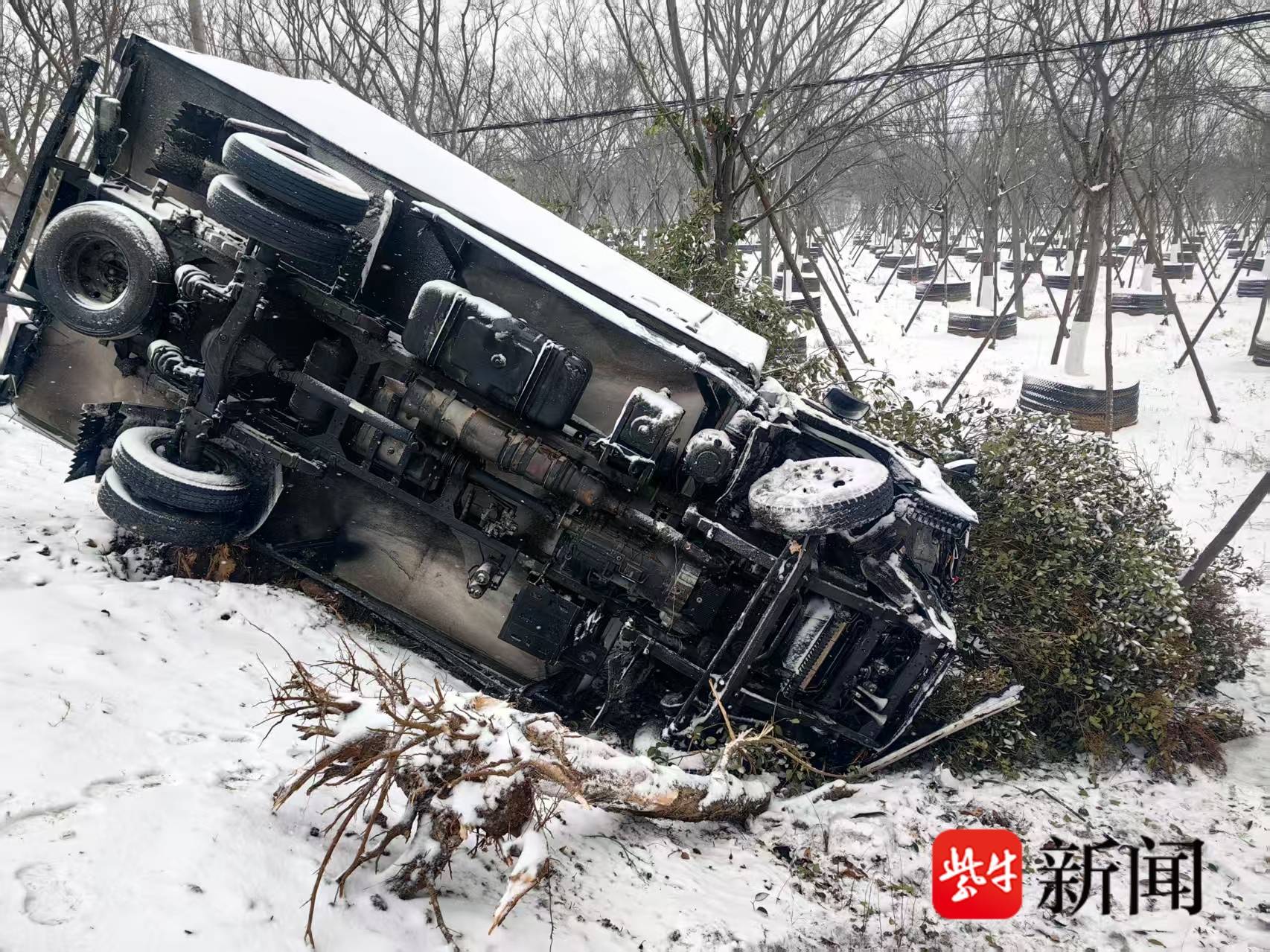 凌晨两起事故 皆因天雨路滑,当日7时36分,镇江市消防救援支队指挥中心首先接到报警,称句容市天王线发生一起交通事故。指挥中心立即调派颜真卿路消防救援站,出动1台消防车、5名消防救援人员赶赴现场。7时43分,救援力量到达现场,发现一辆厢式货车(苏A·T3Z91)因雨雪天打滑发生侧翻,导致一名司机被困车内。消防救援人员迅速使用随身腰斧对车窗进行破拆,成功帮助司机脱困。