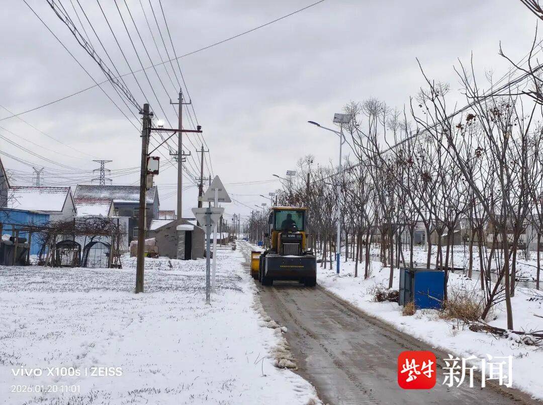 1月19日,2026年的第一场雪悄然而至。射阳县气象台于1月20日8时35分升级发布道路结冰橙色预警信号。面对突发雨雪冰冻天气,射阳县海通镇迅速部署、立即行动,第一时间组织各村(社区)、各部门单位投入扫雪除冰作业,全力确保人民群众平安出行。