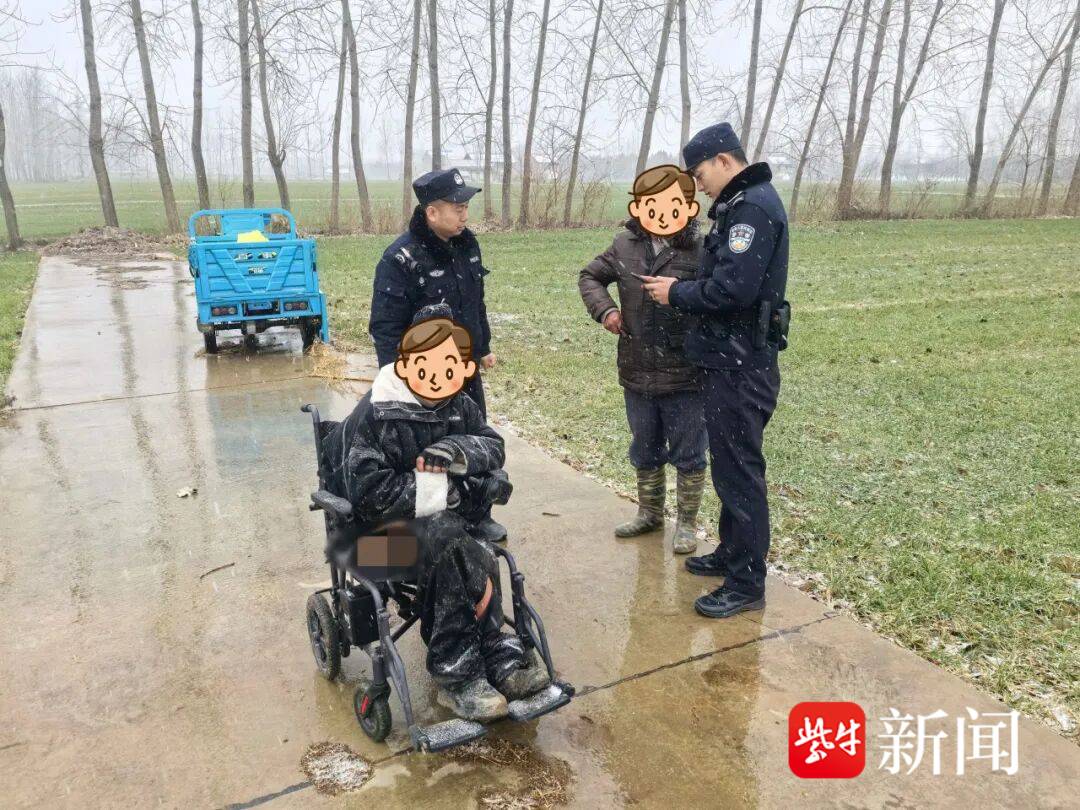 阜宁县公安局羊寨派出所接到群众报警称亲人走失。经调查发现,走失人员已经离开羊寨辖区进入芦蒲镇辖区,随即对接芦蒲派出所继续接力寻找。经过一夜的寻找,终于在一处农田里找到,民警安全将其交给家人。