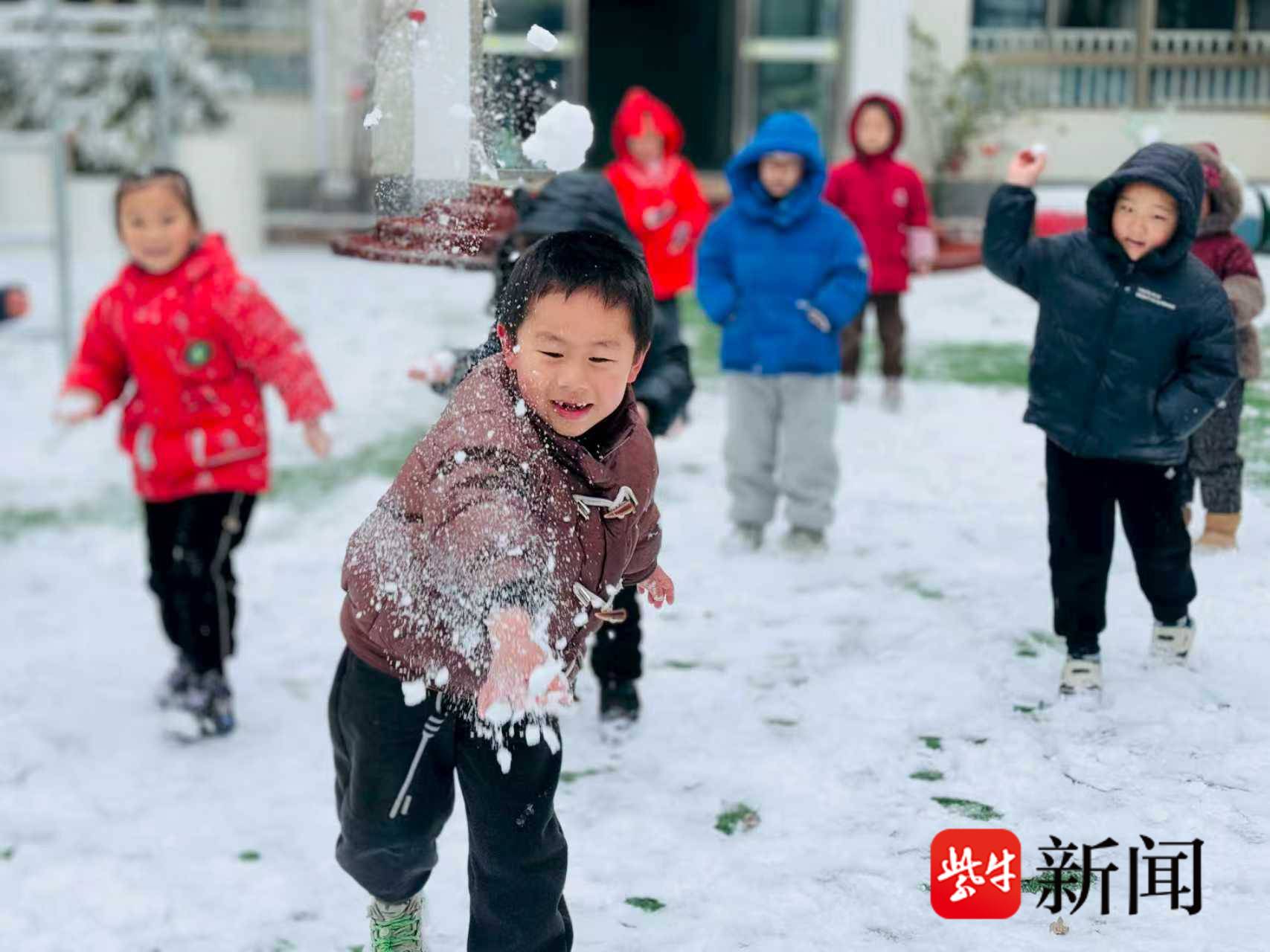 课间,老师和孩子们一起冲向雪地,堆雪人、打雪仗,尽情感受这难得的“冰雪奇缘。