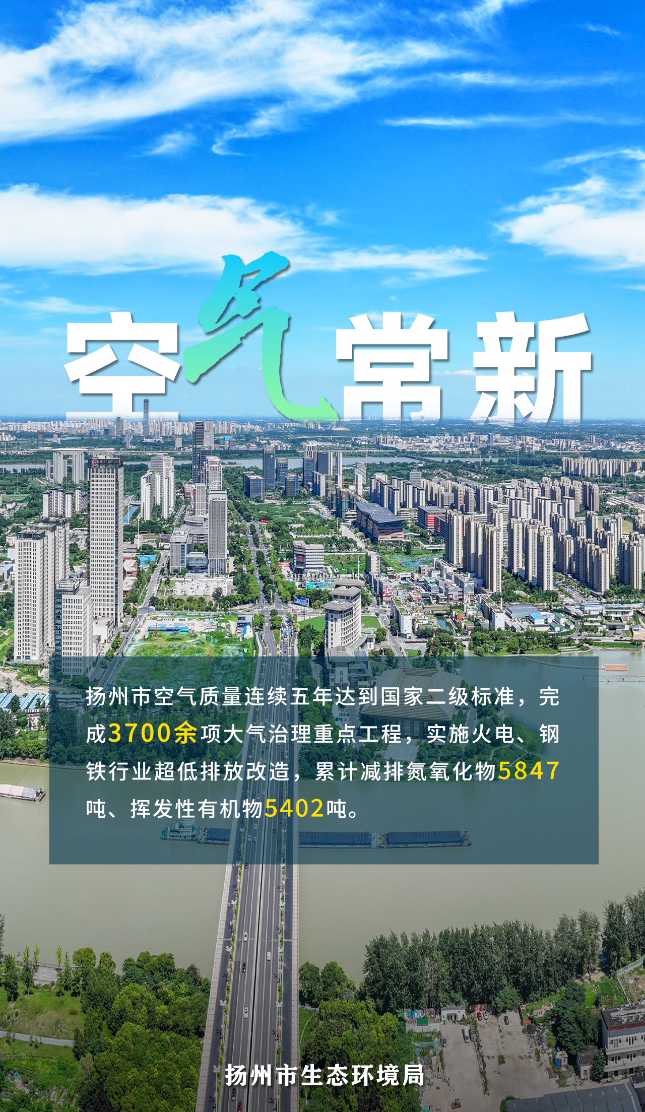“十四五”期间,扬州市深入推进蓝天、碧水、净土三大保卫战,全方位夯实生态根基。