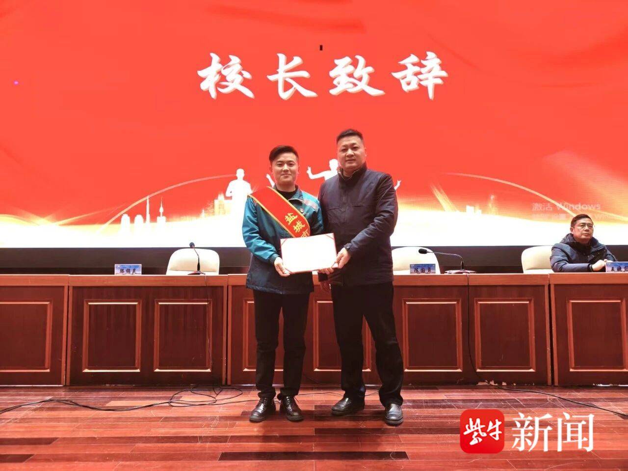 为大力弘扬劳模精神、劳动精神、工匠精神,引导青少年厚植“劳动光荣、创造伟大”的价值理念,1月15日下午,盐城市鹿鸣路初级中学在中校区鹿鸣大讲堂成功举行“对话劳模”成长课堂活动。本次活动特邀盐城市人大代表、劳动模范陈国勇同志走进校园,与初一年级全体师生共赴一场关于奋斗、成长与价值的深度对话。学校党委副书记、校长彭庆出席活动并致辞,工会主席滕锦昊主持本次活动。