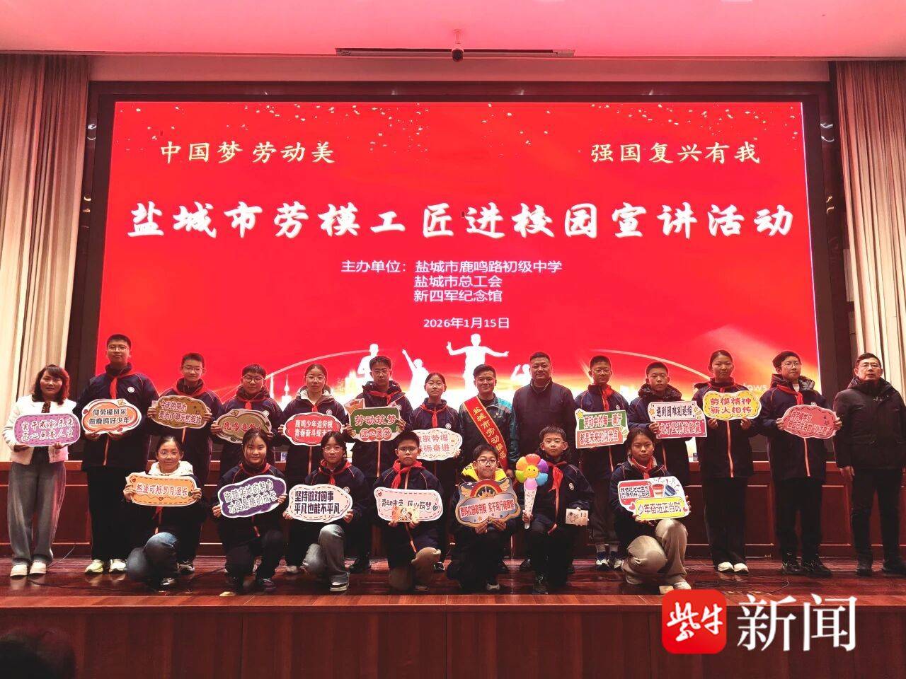 盐城市鹿鸣路初级中学举行“对话劳模”成长课堂活动