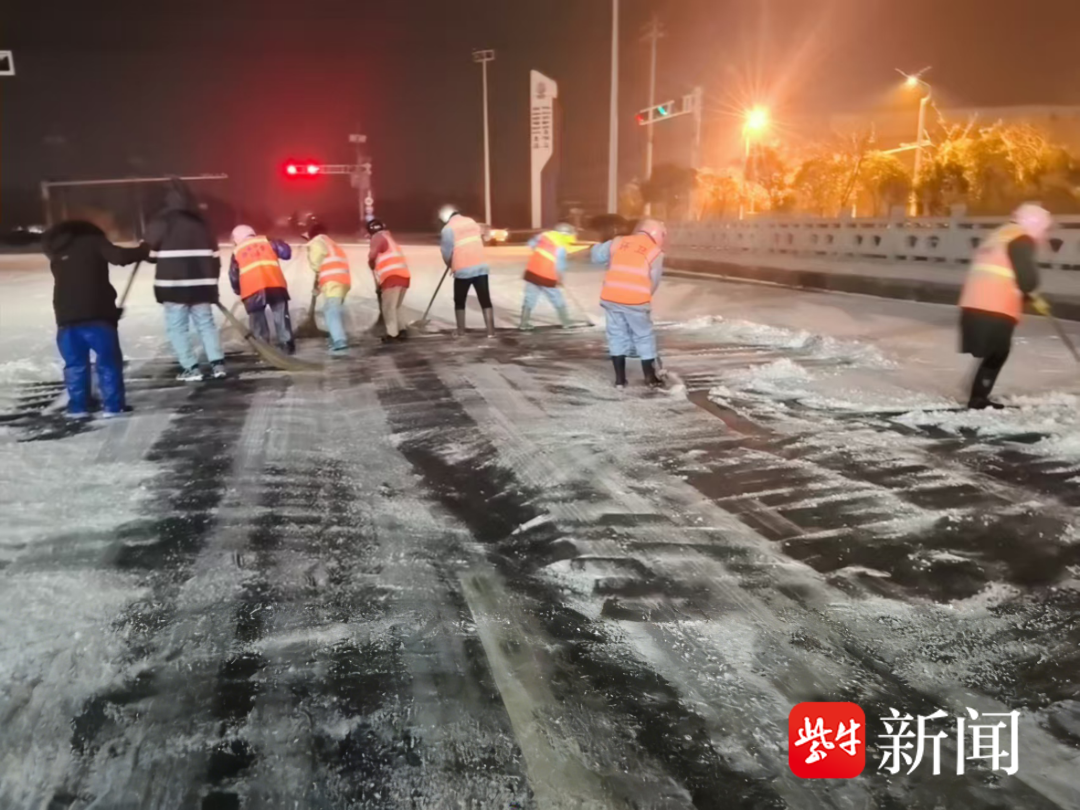 射阳港区城管队以“雪停路净、守护无忧”为目标,全员在岗连夜奋战、清晨持续攻坚。党员干部带头战严寒、破坚冰,聚焦关键区域采取“机械+人工+融雪”三维作业模式,环卫工人逐点排查清冰扫雪,全力消除安全隐患,以城管担当快速恢复道路畅通,守护群众出行安全。