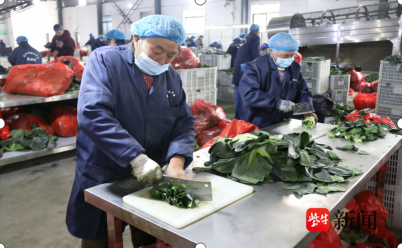 如今搬经龙桥、江安周庄专门建了黑塌菜初加工点,把“冬日限定”变成“全年在线”的鲜滋味。手工切段、仔细挑拣,再经过清洗、杀青、速冻、打包......一套“锁鲜流程”下来,把黑塌菜的脆嫩鲜甜牢牢锁在包装袋里。
