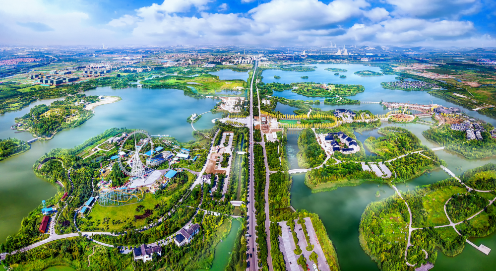 潘安湖国家湿地公园鸟瞰图(郑舟 摄)