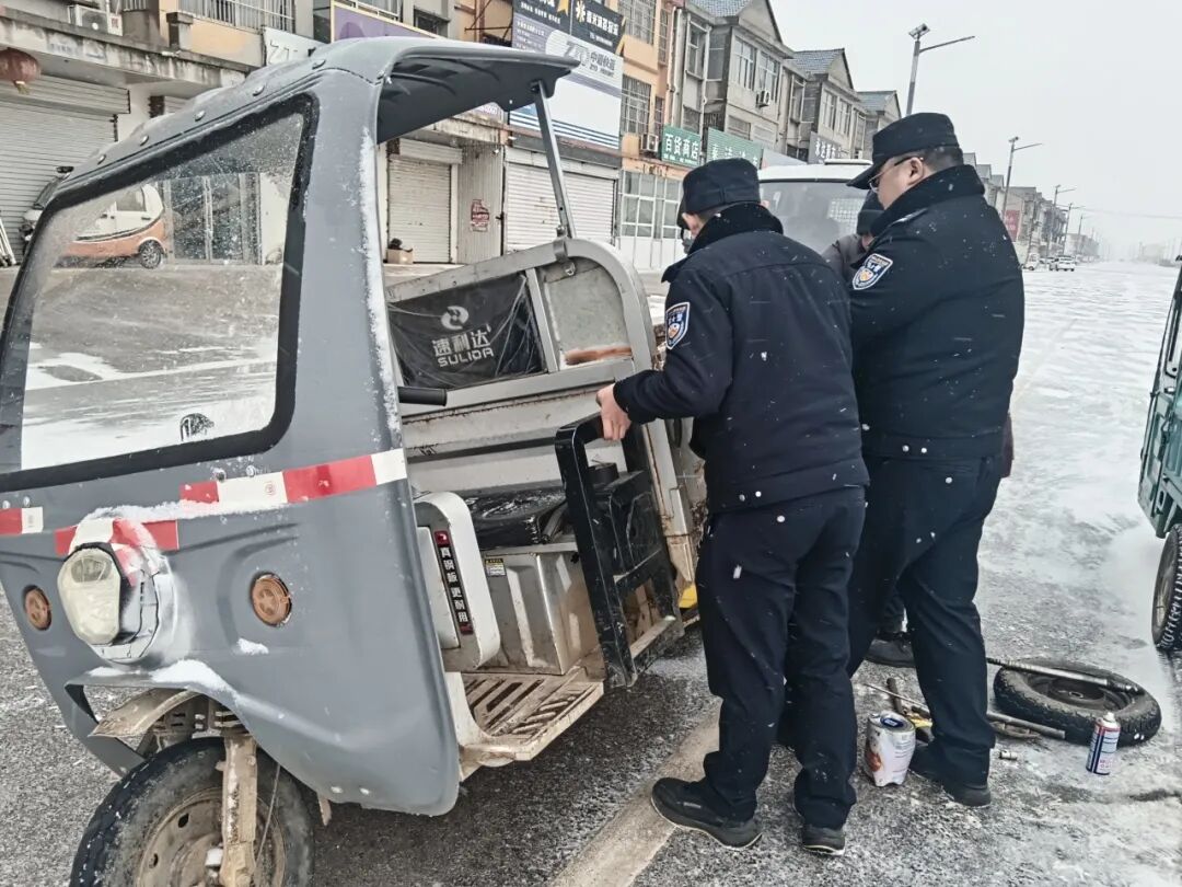 1月19日早8时许,连云港公安开展路面巡查时,发现一老人因三轮车爆胎,蹲在雪地中无助等候,民辅警耐心安抚并快速帮其更换轮胎,还细心叮嘱雪天出行安全,暖心举动让老人倍感温暖。