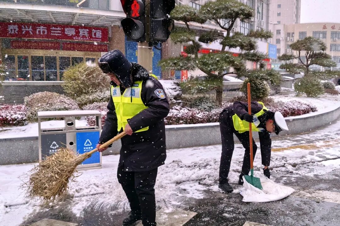 泰州公安以“雪停人动、人到冰除”的担当,组织民警辅警全力开展扫雪除冰保畅通行动。“雪在下,我在岗”,是泰州公安与初雪的温暖双向奔赴。