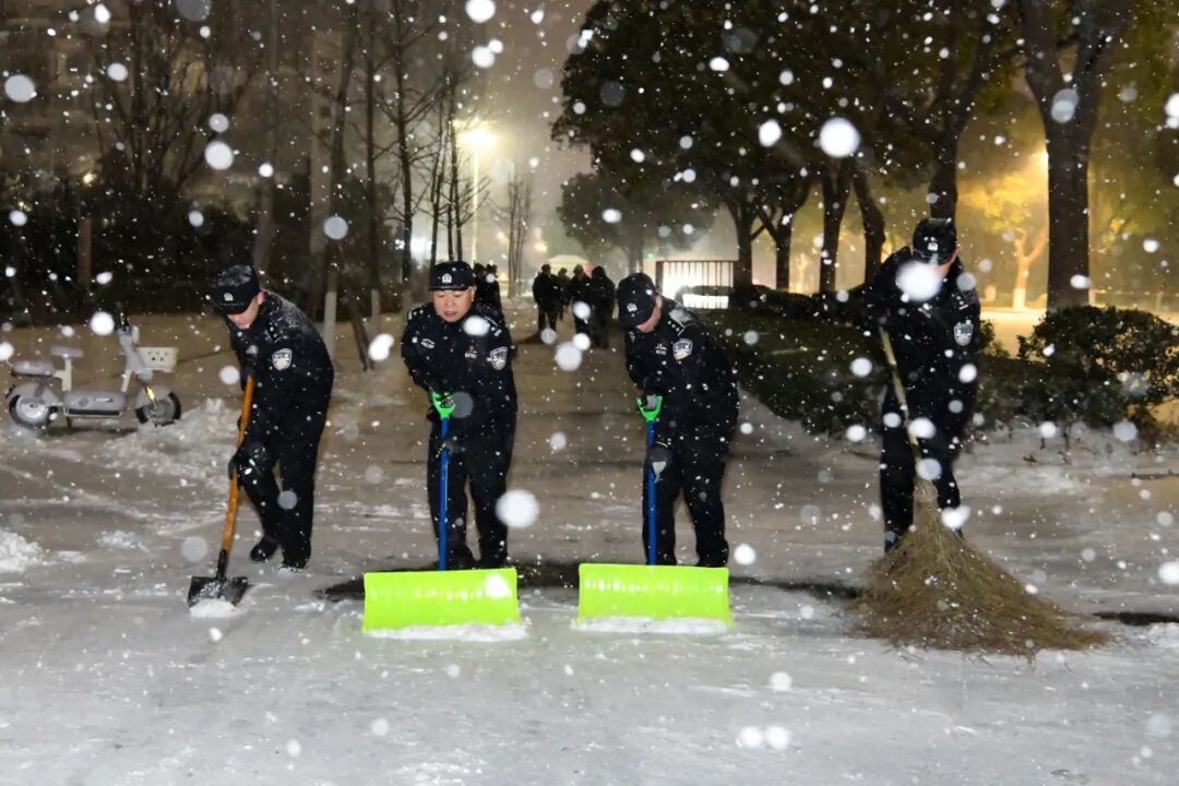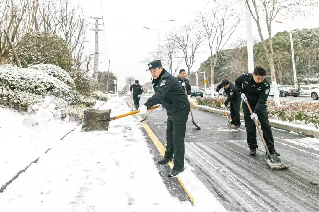 盐城公安穿梭在城市各个角落,清雪除冰、铲雪通路,为群众出行提供安全保障,以硬核坚守筑起一道坚实的平安防线。
