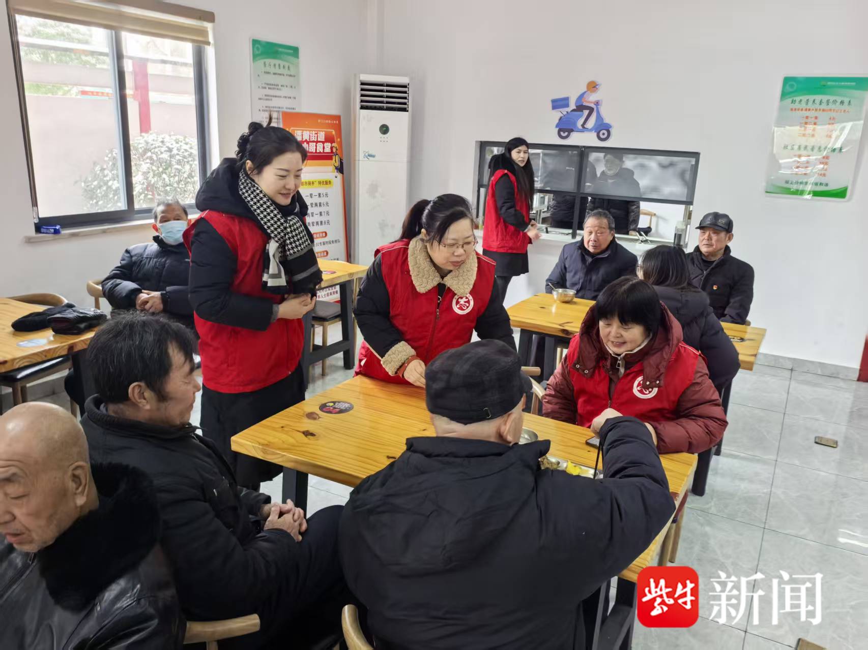 文艺演出结束后,大家一同走进社区长者幸福食堂,整洁明亮的环境、清晰醒目的价目表让人眼前一亮。食堂专为60岁以上老人推出两荤两素、一荤两素的惠民套餐,搭配每日更换的营养汤,充分贴合老年人口味与营养需求。当天,食堂还特别准备了寓意吉祥的新春暖心餐,三个团队的志愿者代表与社区党员化身“暖心服务员”,为老年居民盛饭端菜、贴心打包,还专门为行动不便的独居老人提供上门送餐服务。据悉,该食堂采用“专业运营+老党员监督+党员志愿助力”模式,不仅解决了老年人“吃饭难”的问题,更成为传递社区温情的“幸福驿站”。活动现场,党员们还与老年居民亲切交流,认真听取大家对食堂运营的意见建议,以便持续优化服务细节。