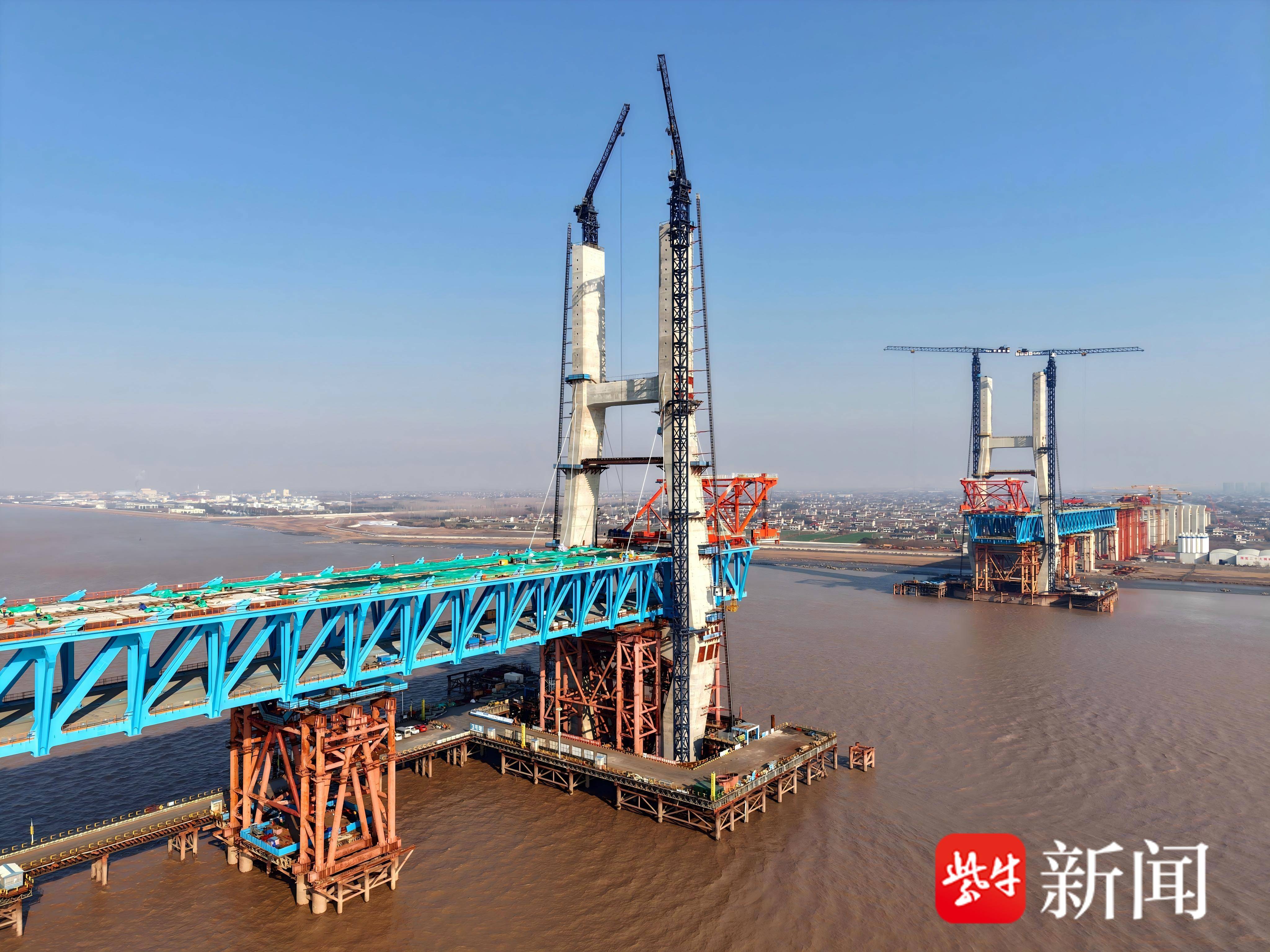 1月21日,中铁大桥局承建的北沿江高铁崇启公铁长江大桥再迎重要建设节点,3号塔中跨1号斜拉索成功完成安装,标志着这座长江流域跨度最大的公铁两用斜拉桥正式进入斜拉索施工阶段。