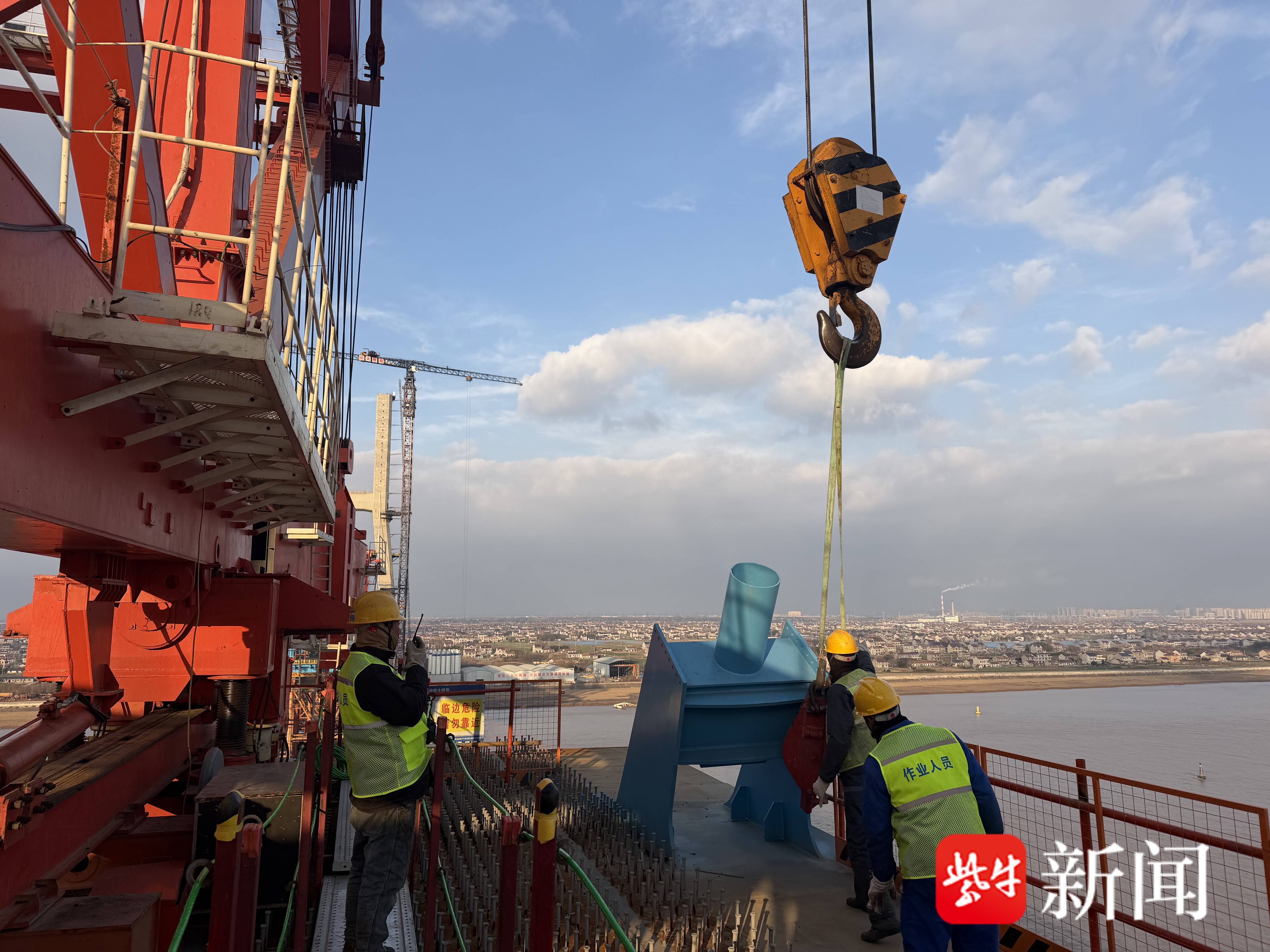崇启公铁长江大桥主桥首根斜拉索成功安装