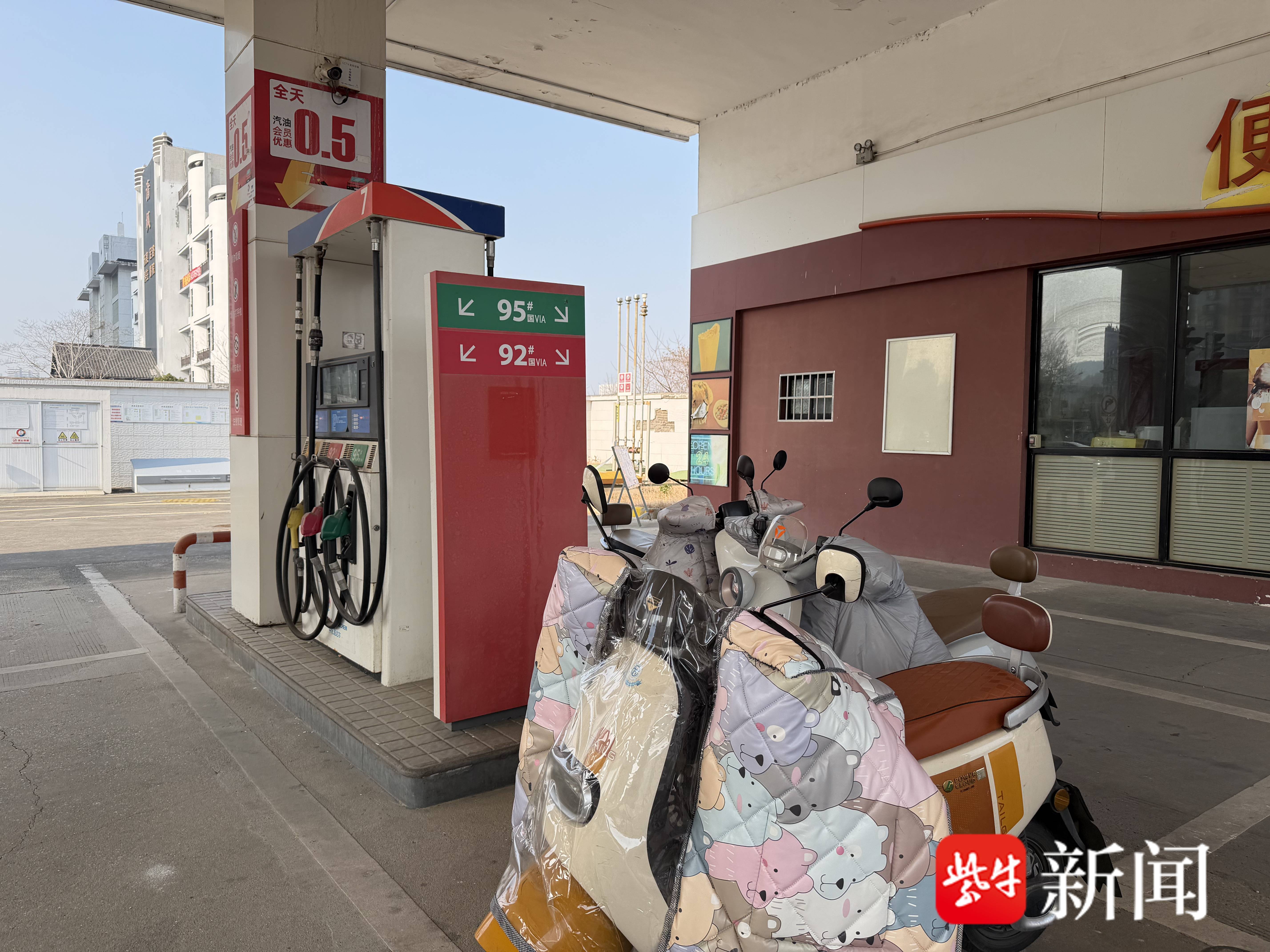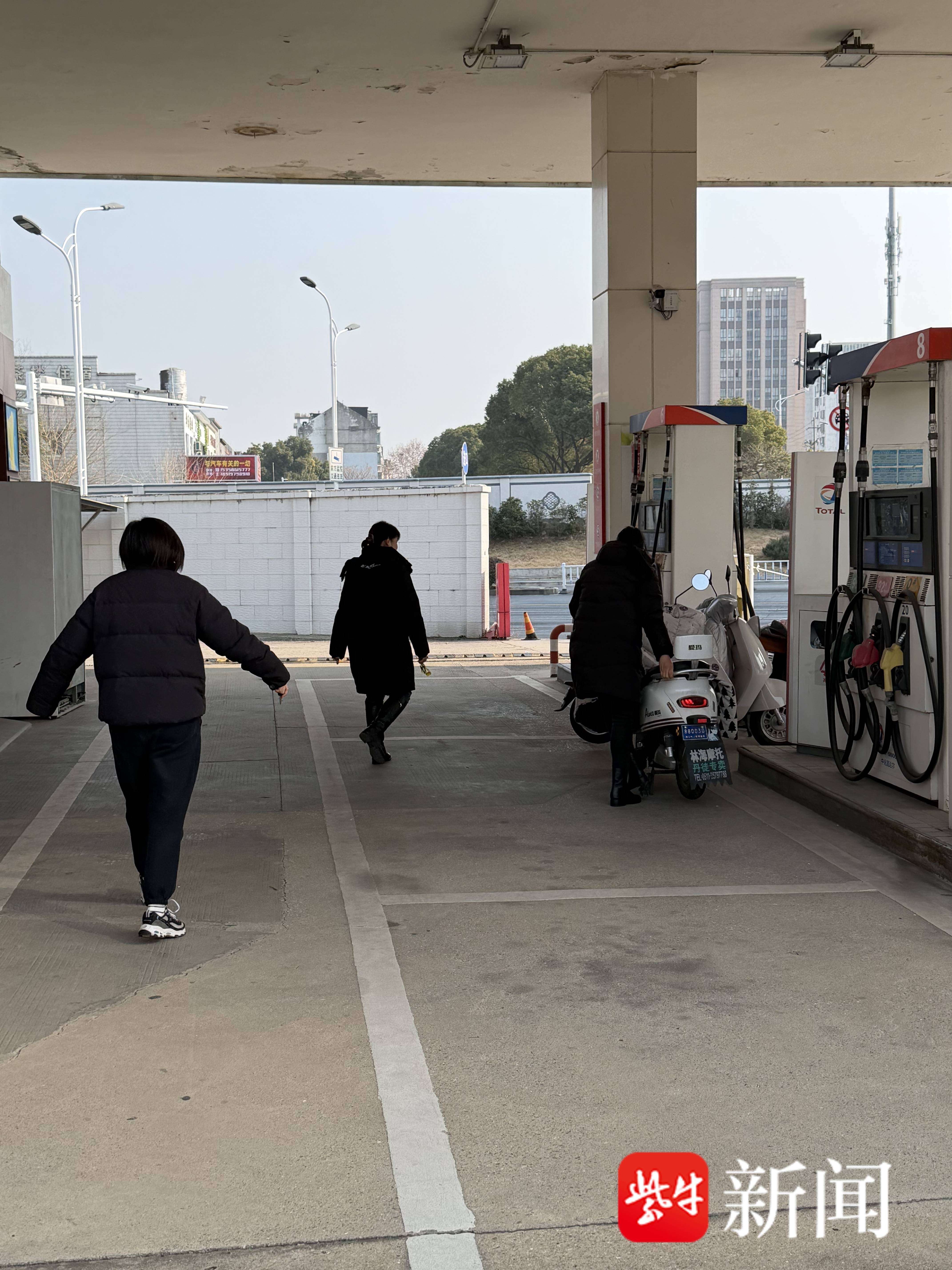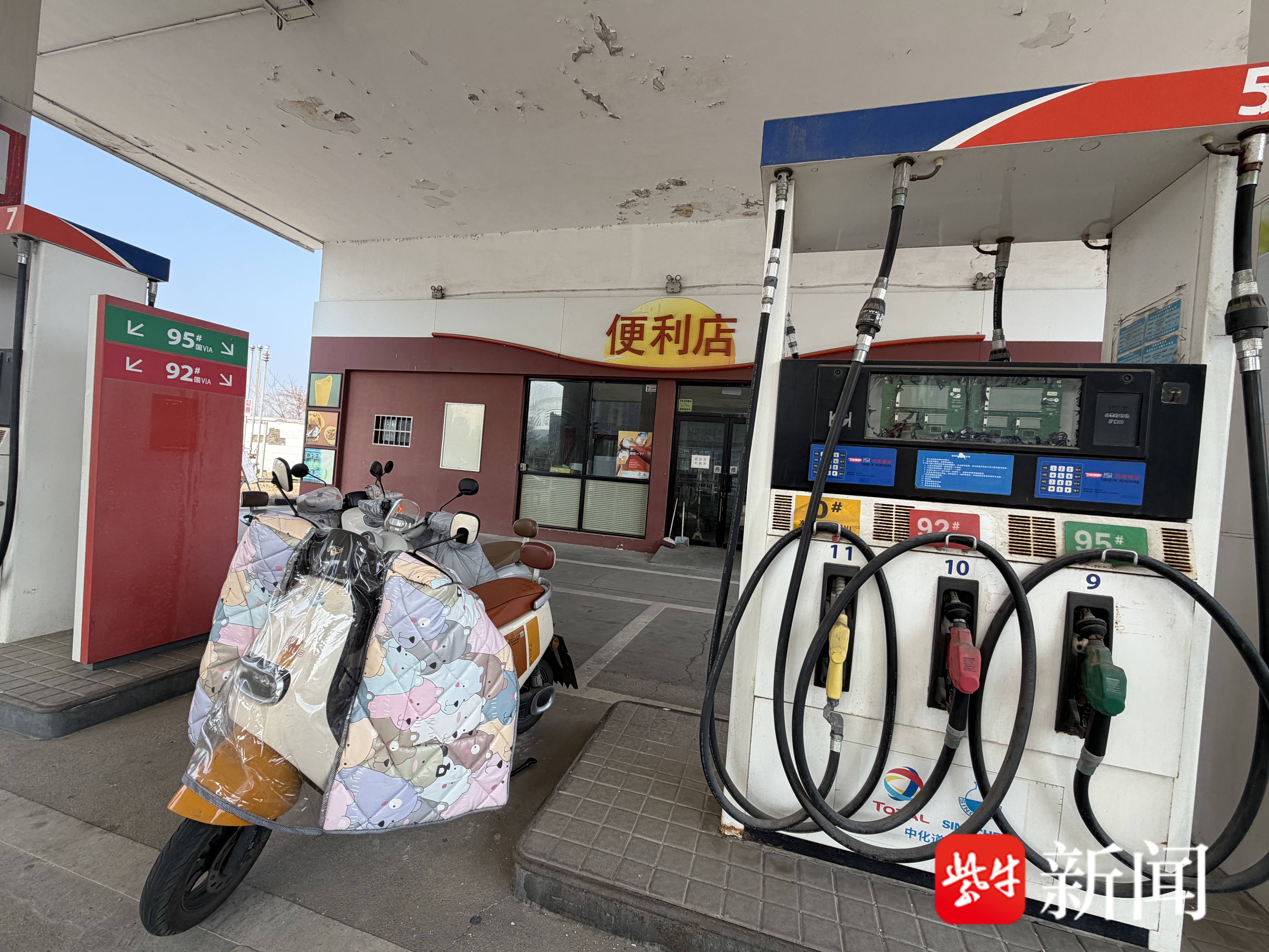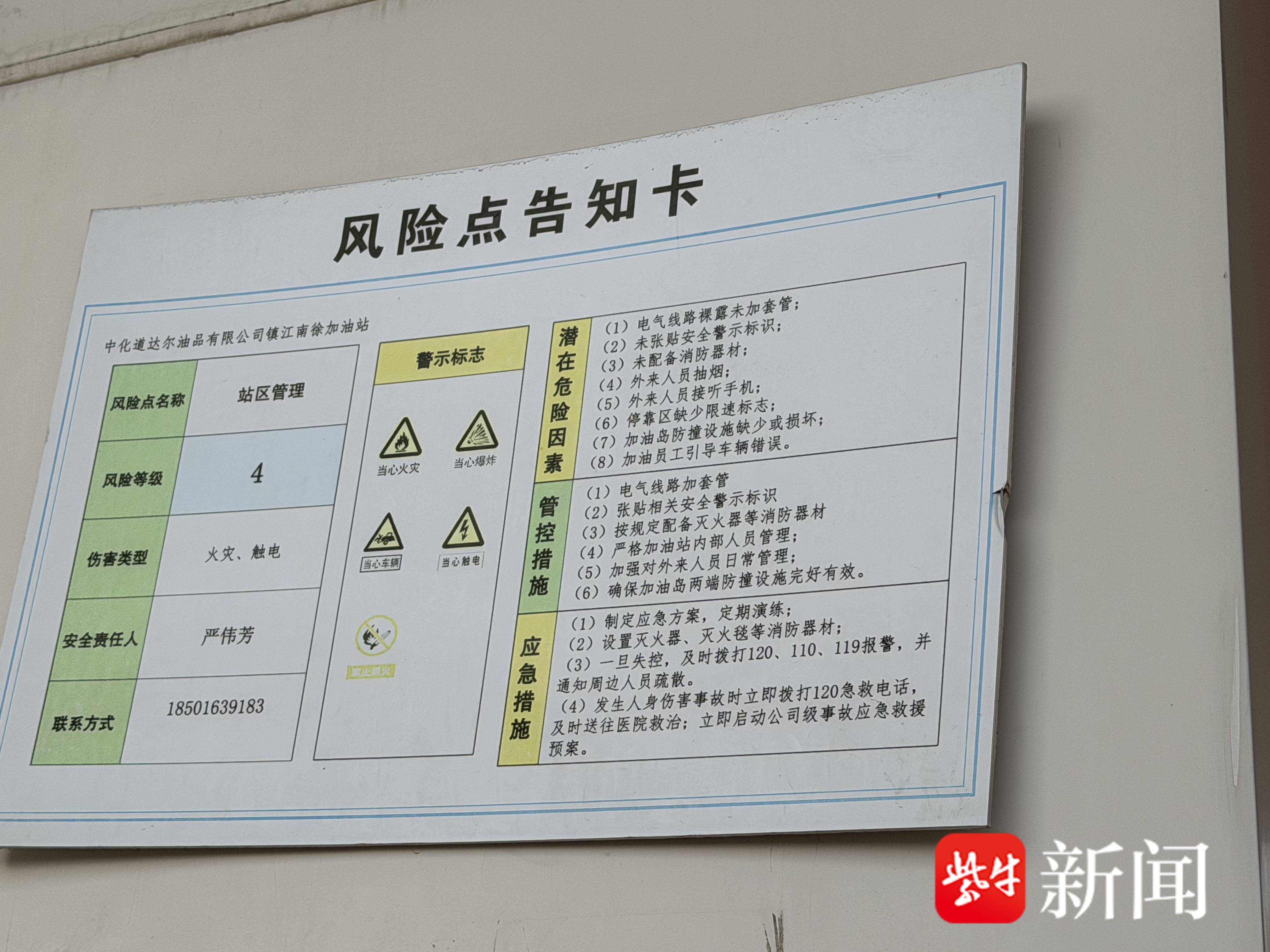 1月8日,在吴青等带领下,扬子晚报/紫牛新闻记者随意就进入了这座“停摆”的加油站内,没有看到加油站内有任何人员值守,4台加油机一应俱全。而让吴青等惊心的是,有三辆电动车就放在两台加油机中间!一旁张贴的“风险点告知卡”(当心火灾、当心爆炸、当心车辆、当心触电)和入口处的低垂安全带则形同虚设。记者透过门上玻璃望进去,加油站内的“便利店”已看不到什么商品,一派凌乱荒废的景象。