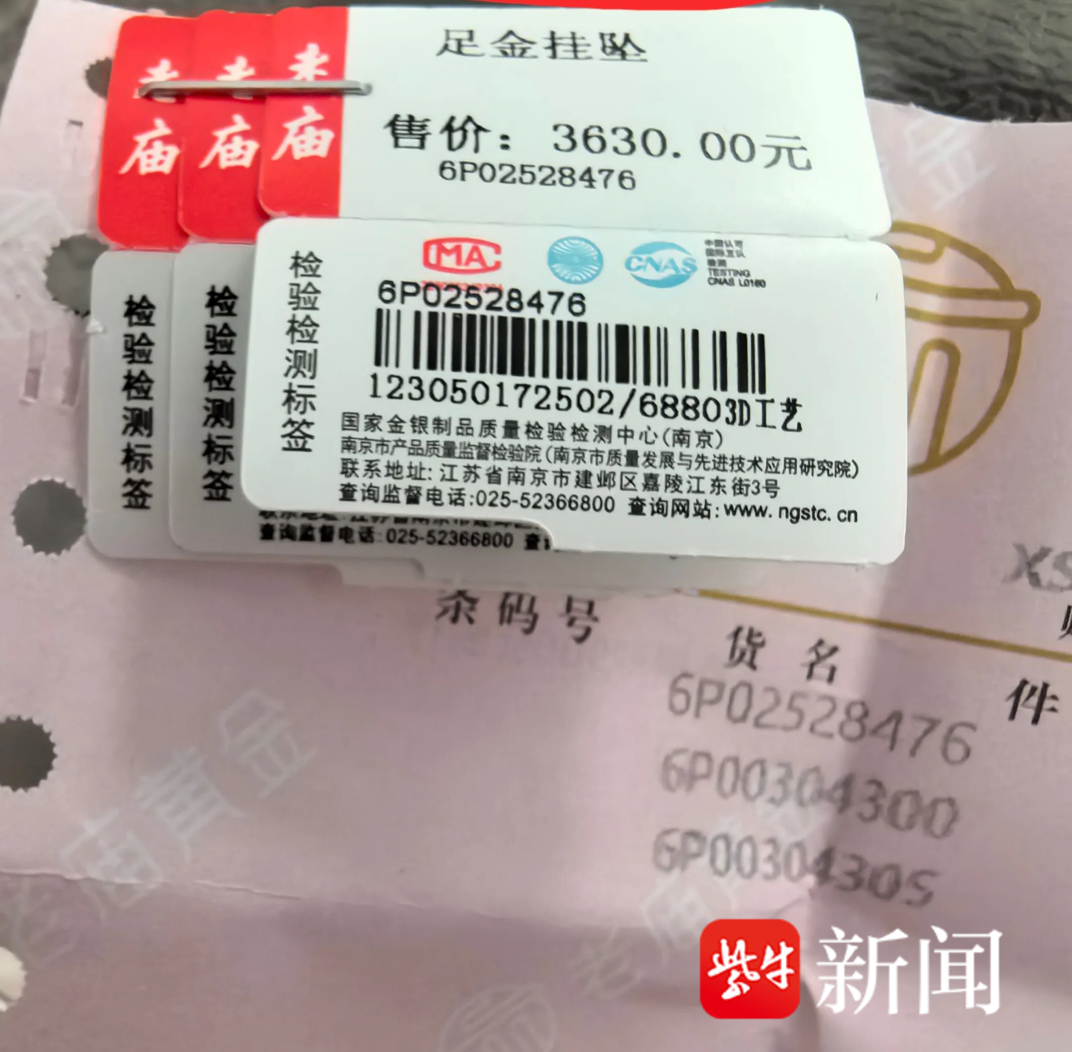 消费者买到的金饰价签被撕去了克重联