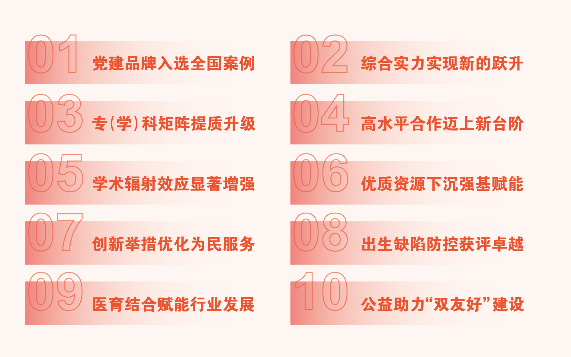 坚持以“一流党建引领高质量发展”,把党建成效作为检验全面工作的核心标准。院党委打造的“一根红线激活十分党建”品牌入选中国卫生健康思想政治工作促进会“一地一品”品牌案例,文化建设案例入选公立医院新文化建设“精进笃行 文化立院”典型案例。