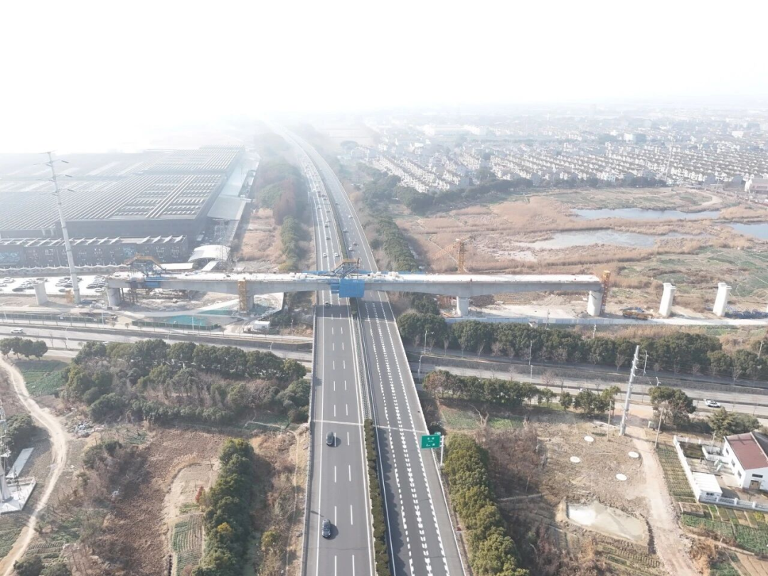 近日,通苏嘉甬高铁苏南特大桥跨沪渝高速(60+100+60)米连续梁合龙。