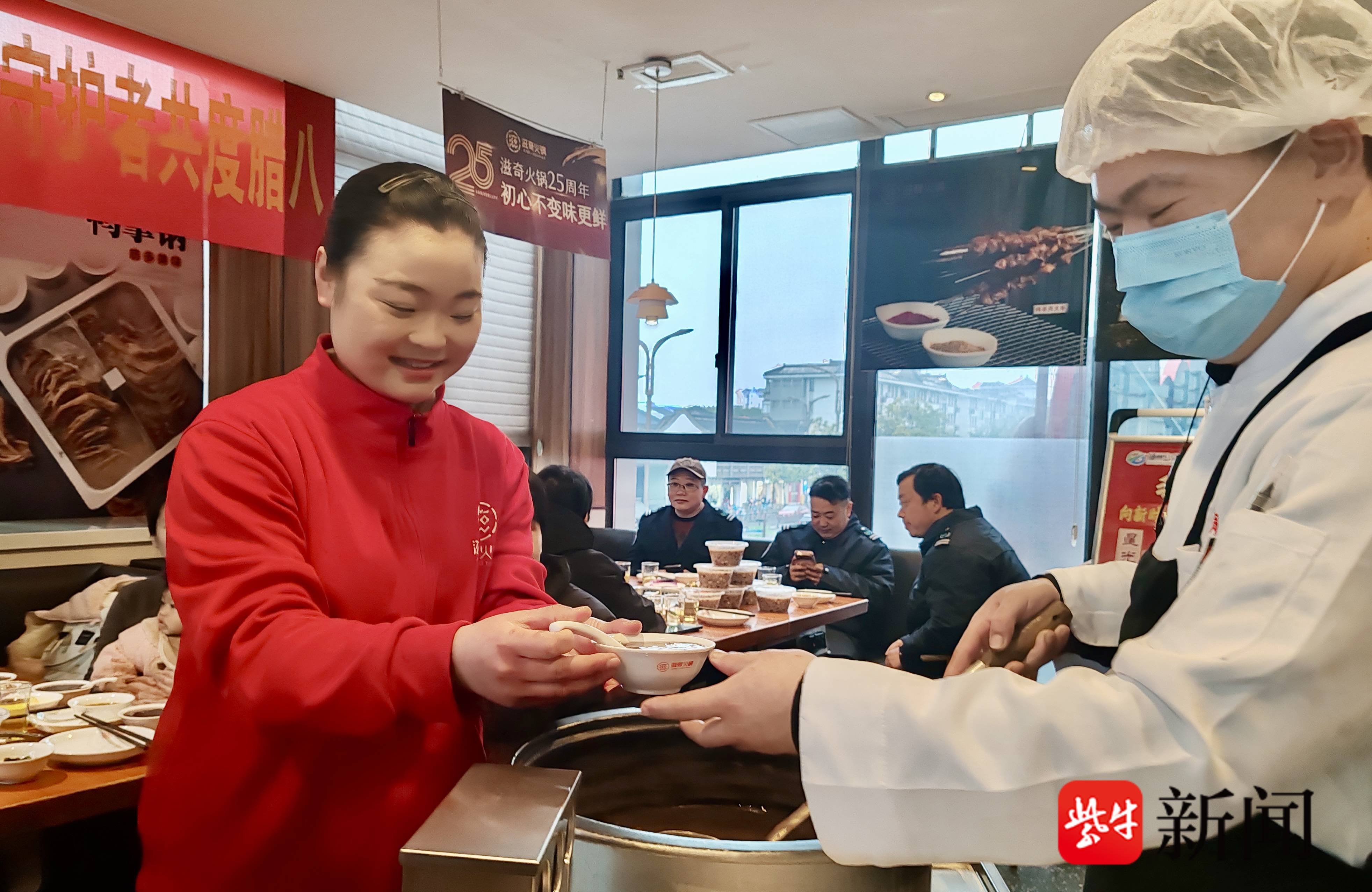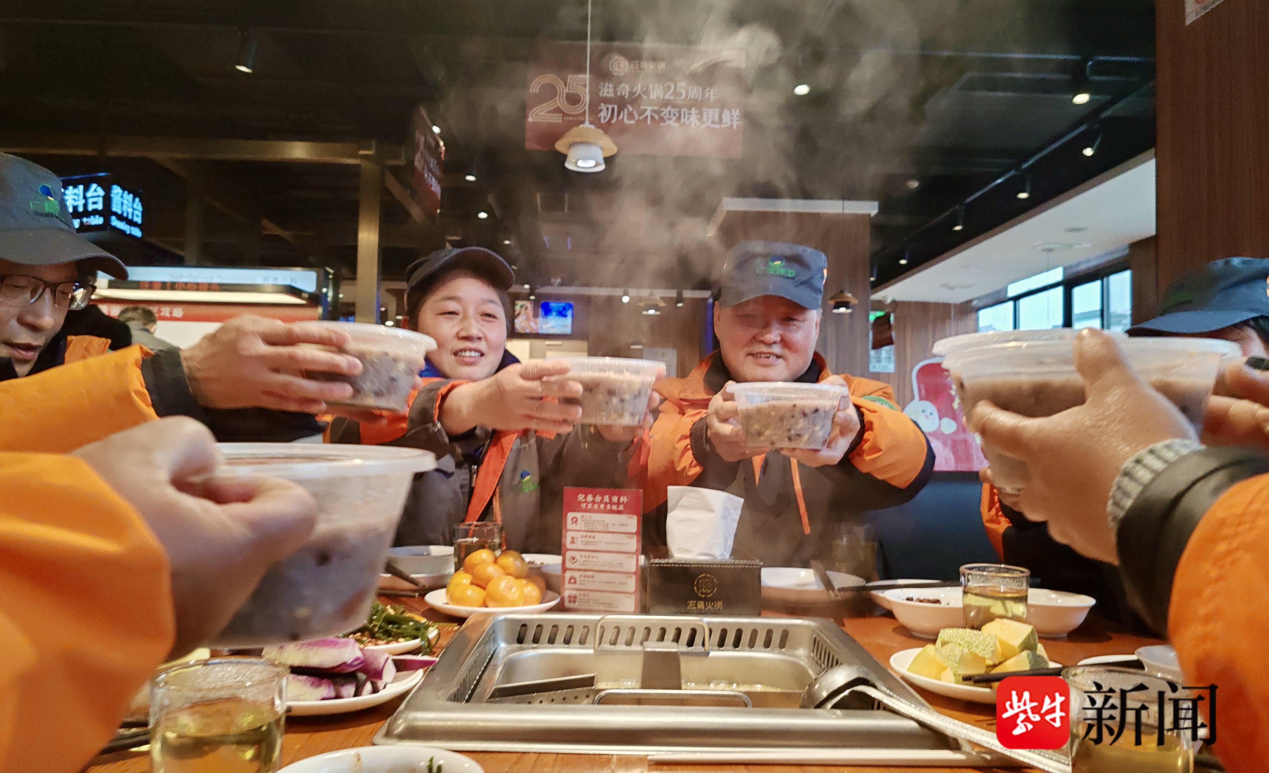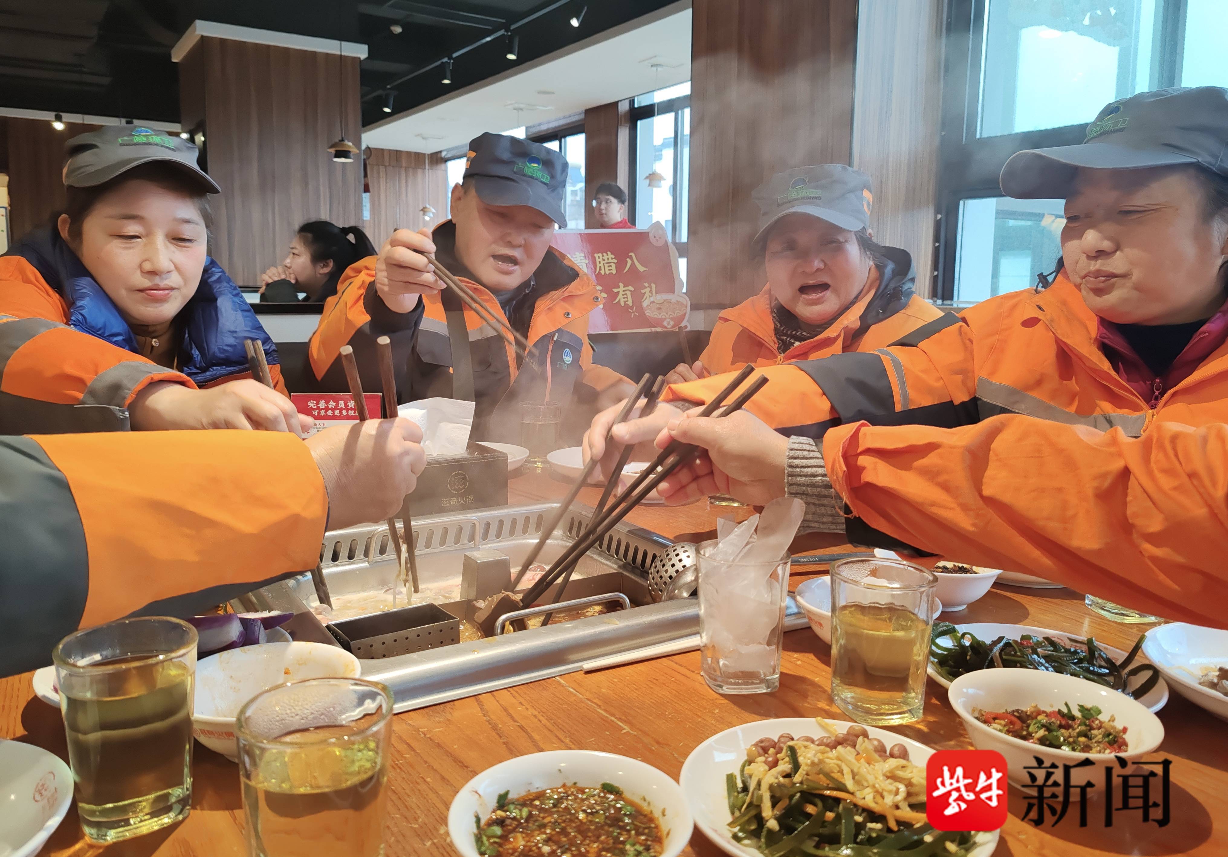 扬子晚报网1月26日讯(通讯员 丁红华 朱文娟 记者 陈咏)在我们身边,有这样一群人:他们头顶星星上班,身背月亮回家。他们日日披星戴月,天天无怨无悔。他们是我们敬重的“星路人”,是我们城市的“摆渡人”。26日中午,腊八节。外面寒风劲吹,冷雨飘洒,扬州滋奇火锅珍园店内,却暖意融融,欢声笑语。过了腊八就是年,在这个中国人看重的传统节日里,广陵古城近百名环卫工人和扬州公交集团四分公司公交司机及其家属齐聚,过了个热气腾腾的腊八节。