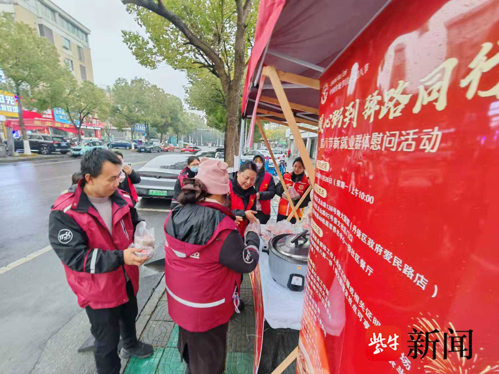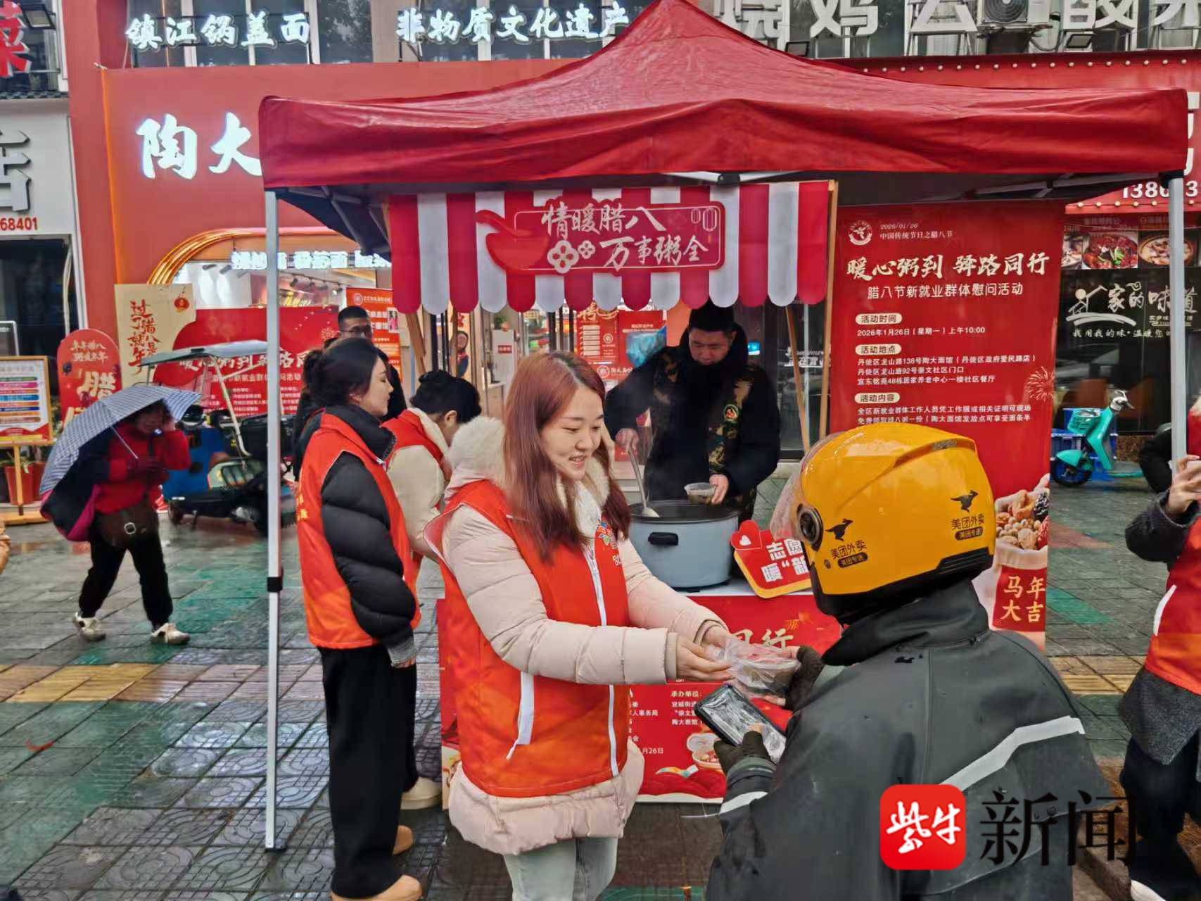 镇江丹徒区腊八节开展关爱活动 为新就业群体送上冬日温情
