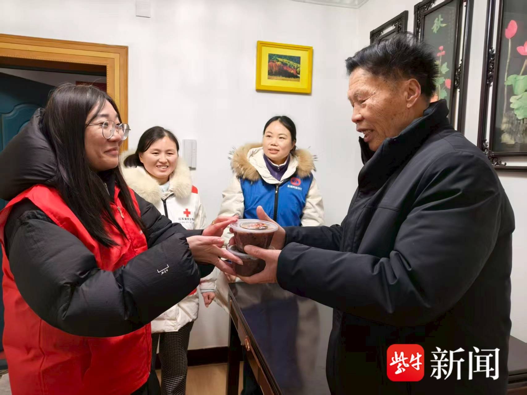 除了户外劳动者,独居老人也是社区牵挂的重点。万户新村社区的工作人员与志愿者走访了多户独居老人,送粥上门的同时,细心询问老人的健康与生活状况,检查家中安全,叮嘱防寒保暖。谢爷爷捧着粥碗连连道谢:“这粥喝在嘴里,甜在心里!”雅和社区的志愿者和网格员也分组行动,为养老院及高龄独居老人送去节日问候。87岁的王奶奶接过腊八粥时眼眶湿润,感谢社区在节日里的陪伴。