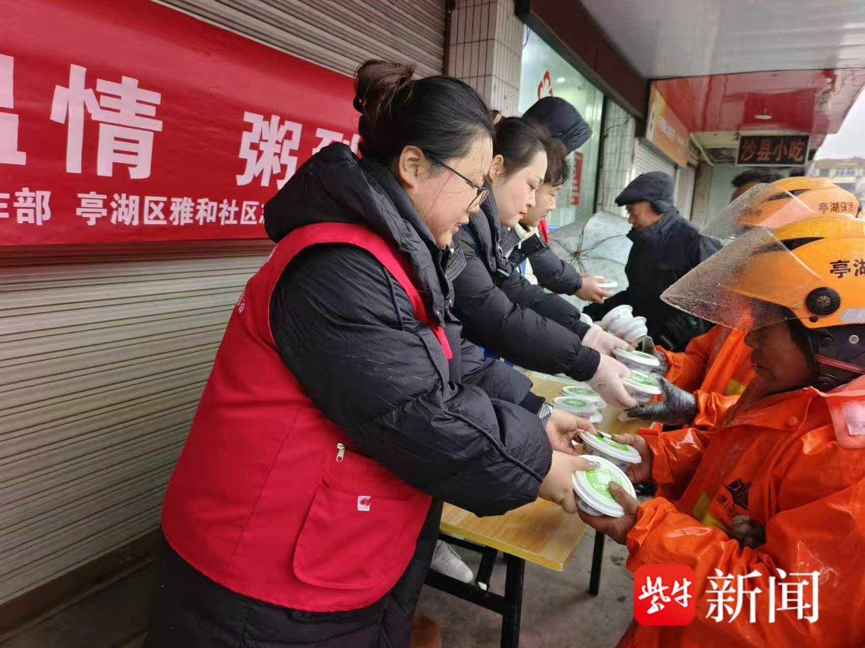 在万户新村社区,工作人员、志愿者与网格员一早便忙碌起来,将熬制好的软糯腊八粥分装打包,首先送至辖区暖心驿站,慰问辛勤劳动的环卫工人。接过温热的粥碗,环卫工人们脸上洋溢着朴实的笑容。“天冷心暖,谢谢社区的惦记!”一位环卫老师傅感动地说。雅和社区同样心系“城市美容师”,在细雨寒风中为早班归来的环卫工人送上暖粥。环卫工人李大姐表示:“粥喝下去,从胃暖到心,每年都被社区记得,真的很感动。”