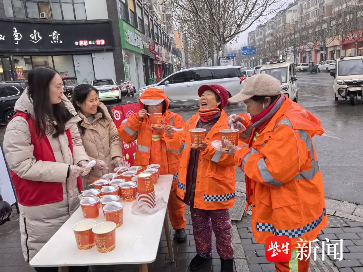在玉带河社区,环卫工人、快递小哥不仅能喝到热粥,还能享受免费的暖手宝和热水补给服务。“粥很甜,心里更暖。”一位环卫阿姨这样说道。