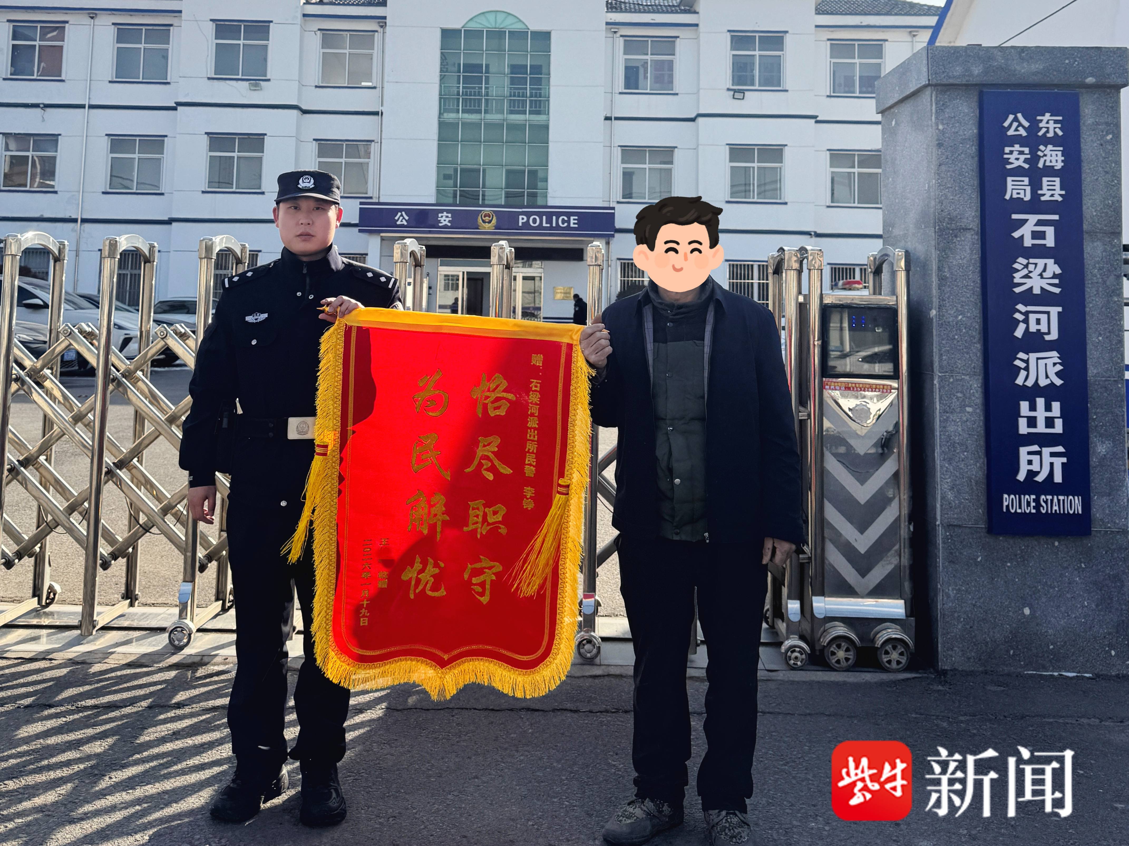 扬子晚报网1月27日讯(通讯员 袁青青 韩杨 记者 孙锐)“这钱是我们的辛苦钱,多亏了你们!”1月18日,在东海县公安局石梁河派出所,从民警手中接过失而复得的2万元现金和全部证件,来自山东临沂的粮商王先生和妻子激动不已,紧紧握住民警的手连连道谢。次日,他们专程将一面印有“恪尽职守 为民服务”的锦旗送到民警手中,感谢警方尽心尽力的帮助。