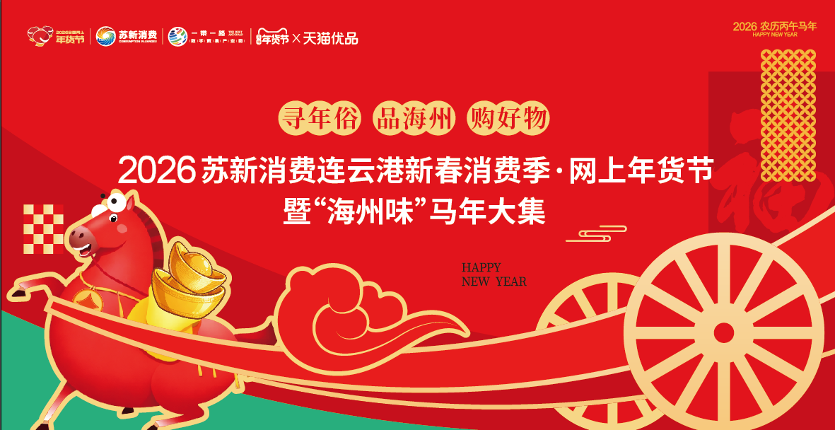年味渐浓,好物集结。为激活新春消费市场活力,传承本土民俗文化根脉,2026苏新消费·连云港新春消费季网上年货节暨“海州味”马年大集,将于1月31日至2月14日在白虎山“一带一路”数字贸易产业园举办。本次活动以“线上+线下”深度融合模式,打造集年货销售、互动体验、民俗传承于一体的一站式消费场景。