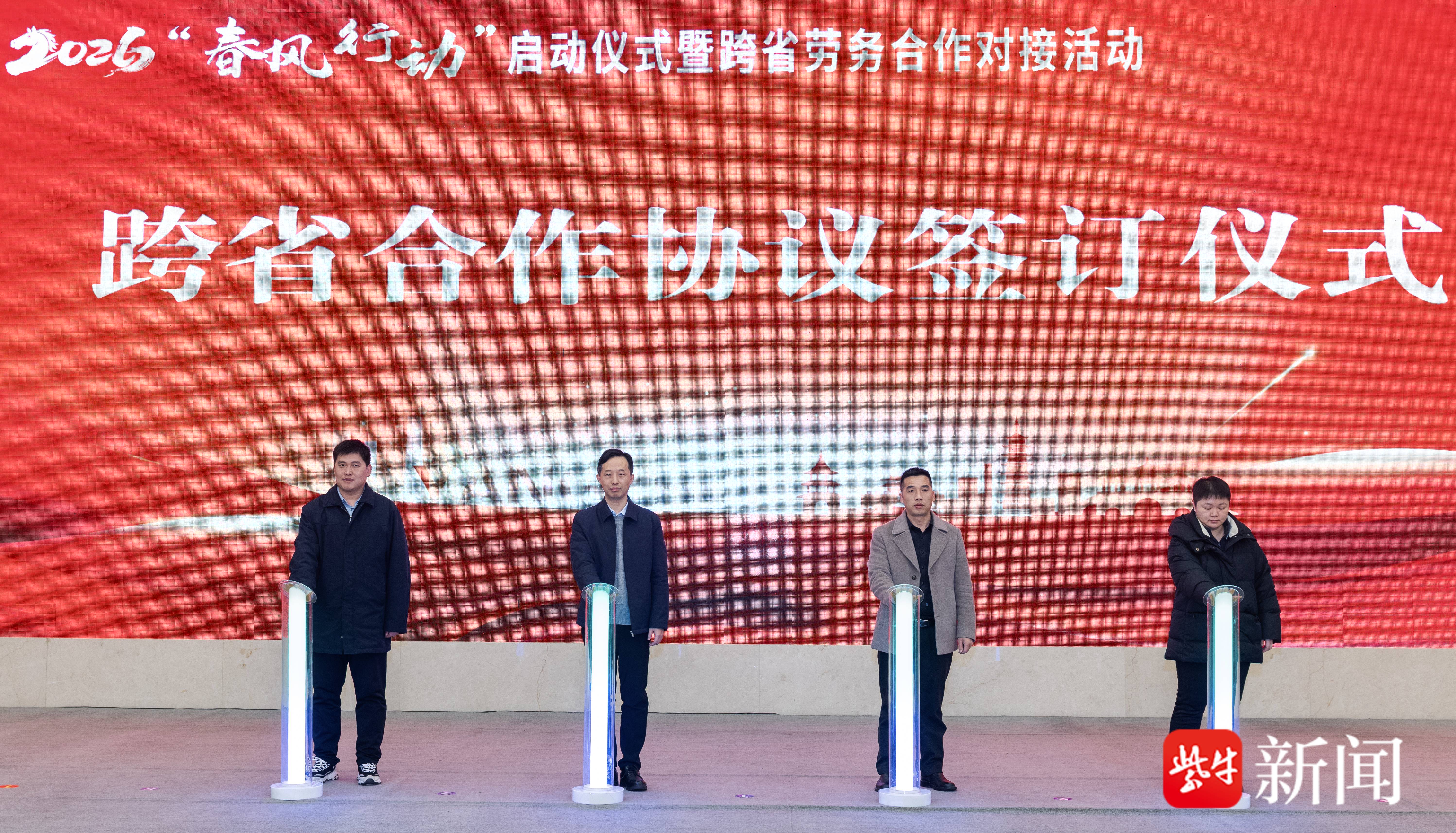 启动仪式上,发布《扬州市政府关于2026年春节前后助企稳工引工的若干措施》,发布春节后扬州市重点企业、重大项目主要用工需求。开展“苏岗贷”签约授信。现场,扬州市人社局与安徽省亳州市、湖南省邵阳市、贵州省黔南州人社局签订跨省合作协议;企业代表、人力资源机构等签署跨省合作协议。现场还设置了参会企业洽谈展位,企业展示用工需求、合作方向等核心信息。省外劳务基地、技工院校代表与该市重点企业开展“面对面”洽谈,分享订单式培养、校企合作实践成果,打通人才培养与企业用工路径。