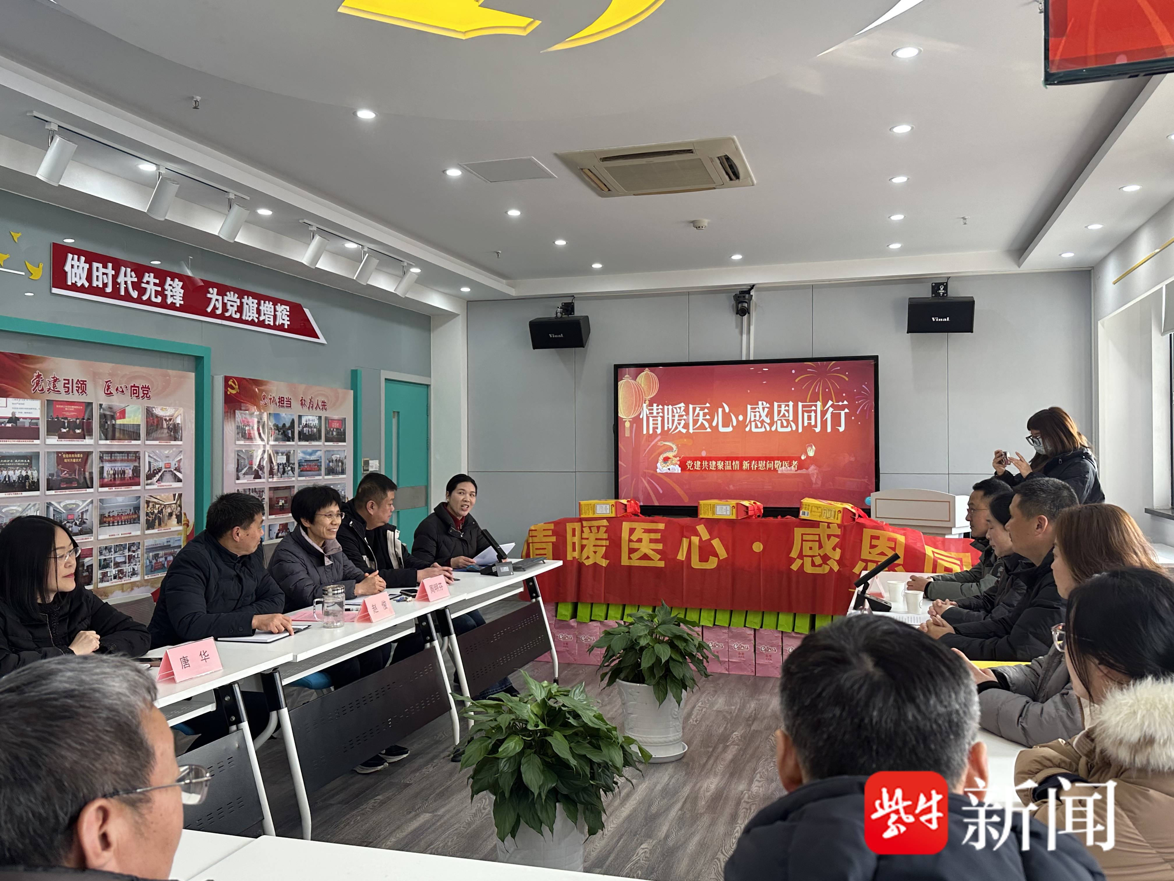 岁暮天寒,情暖人心。在新春佳节即将来临之际,一场温馨的慰问活动在扬州市第三人民医院党建活动室内温情上演。1月27日下午,扬州市新盛街道殷湖社区党总支书记刘礼强带领社区班子成员、居民代表及志愿者,怀着浓浓的敬意与谢意,专程来到医院,开展以“情暖医心·感恩同行”为主题的春节前慰问活动,为长期奋战在医疗健康一线、倾情服务社区的医护人员送上节日的问候与诚挚的感谢。活动由该院宣传科科长陈梅英主持。