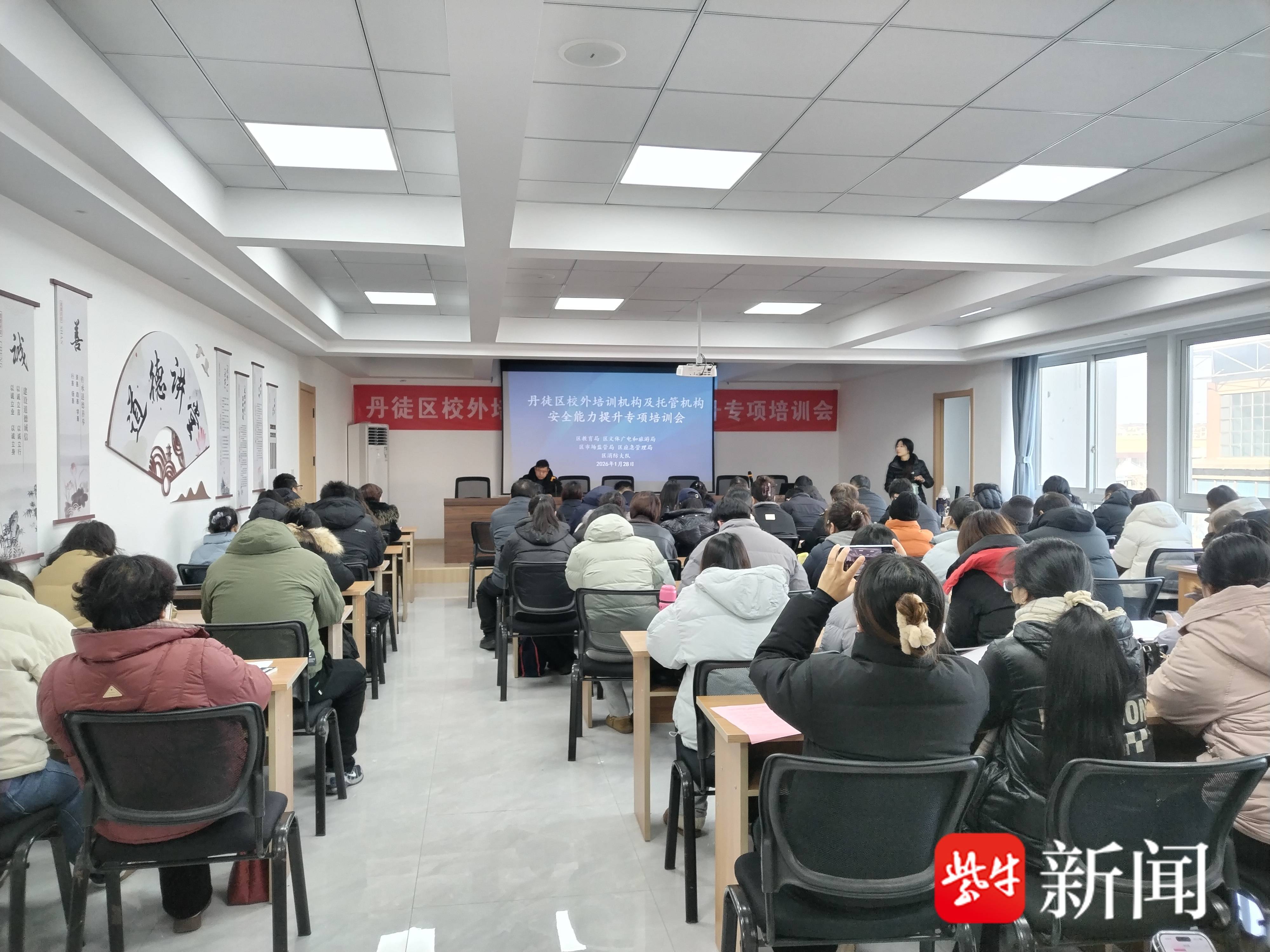 扬子晚报网1月28日讯( 鲍明成 洪燕 记者 万凌云 姜天圣)为深入贯彻落实国家校外培训“安全守护”专项行动要求,切实提升辖区校外培训机构安全管理水平,防范化解各类安全风险,1月28日,由丹徒区“双减”工作办公室牵头,区教育局、区市场监督管理局、区应急管理局、区消防大队等部门在宜城街道社区教育中心举办“校外培训机构及托管机构安全能力提升专项培训”。全区各校外培训机构负责人、安全管理骨干及相关部门监管人员共计80余人参加培训。