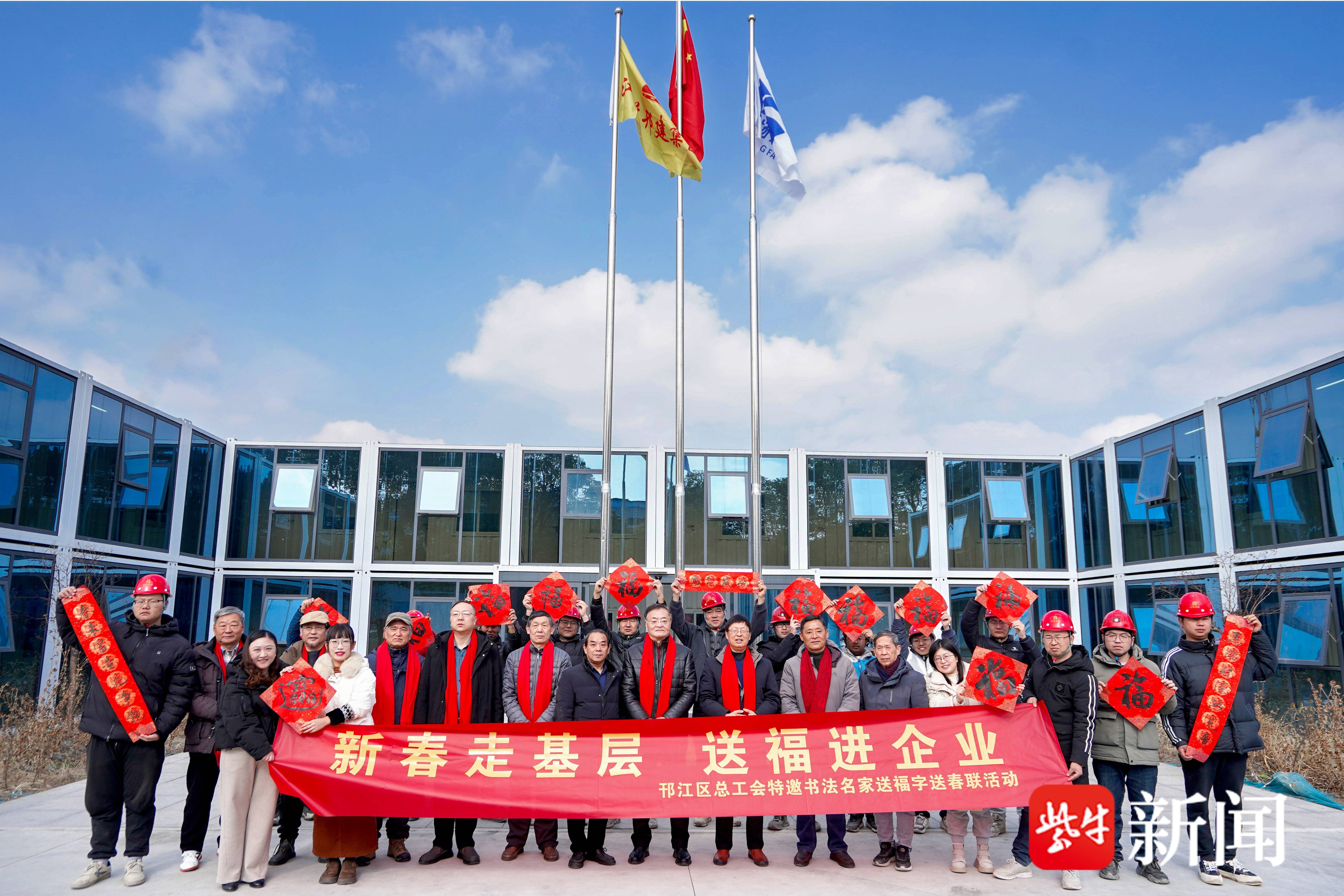 “诗画扬州驰骏马、运河原点起宏图”,书法名家“送福”进企业到工地,农民工兄弟乐开怀
