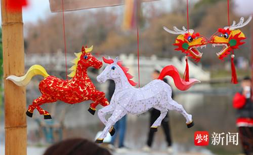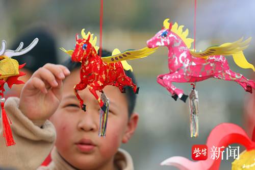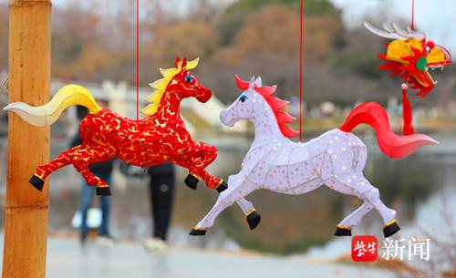 扬子晚报网1月31日讯(通讯员 徐福庚 记者 闫春旭)由江苏省文化和旅游厅主办的2026年“水韵江苏•家门口享非遗”暨非遗贺新春主题系列活动启动仪式在玄武湖举行, 现场汇聚了全省100个非遗项目创作的“马年”主题作品,其中秦淮灯彩尤为亮眼。小马造型的灯彩作品栩栩如生,点亮了新春的喜庆氛围。