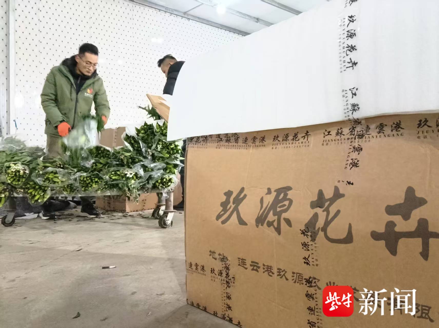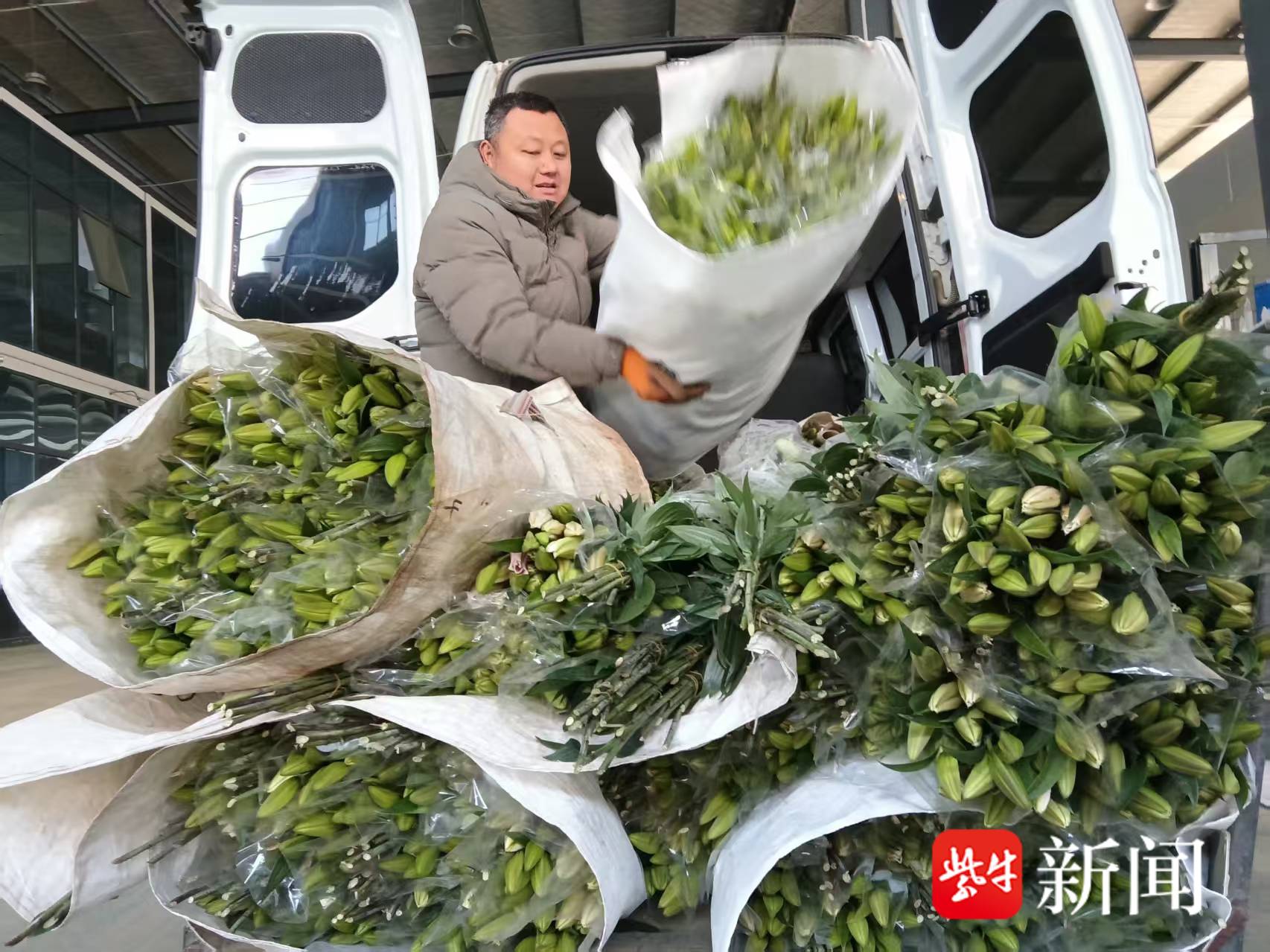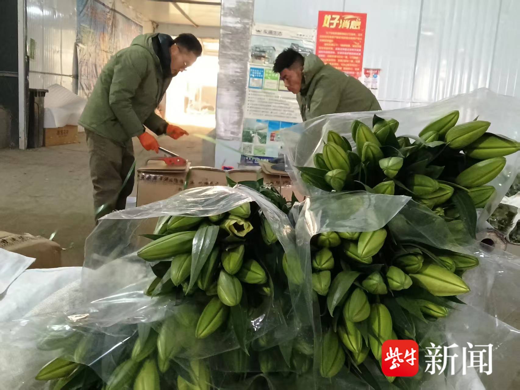 扬子晚报网2月1日讯(通讯员 李晓敏 宋彦伟记者 孙锐)清晨6点钟,薄雾还未散尽,东海县双店镇鲜切花种植基地的寒意里已飘来清甜的百合香。笔者慕名来到2024年全新投用的双店镇鲜花交易市场,走进鲜切花种植大户、连云港花韵通农业发展有限公司负责人苗运斌的分拣包装车间,只见琳琅满目的百合花精致包装,整齐排列,花香四溢,伴随着春节临近,一年中最为关键的百合产销“黄金档”,正伴随着渐浓的年味全面展开。