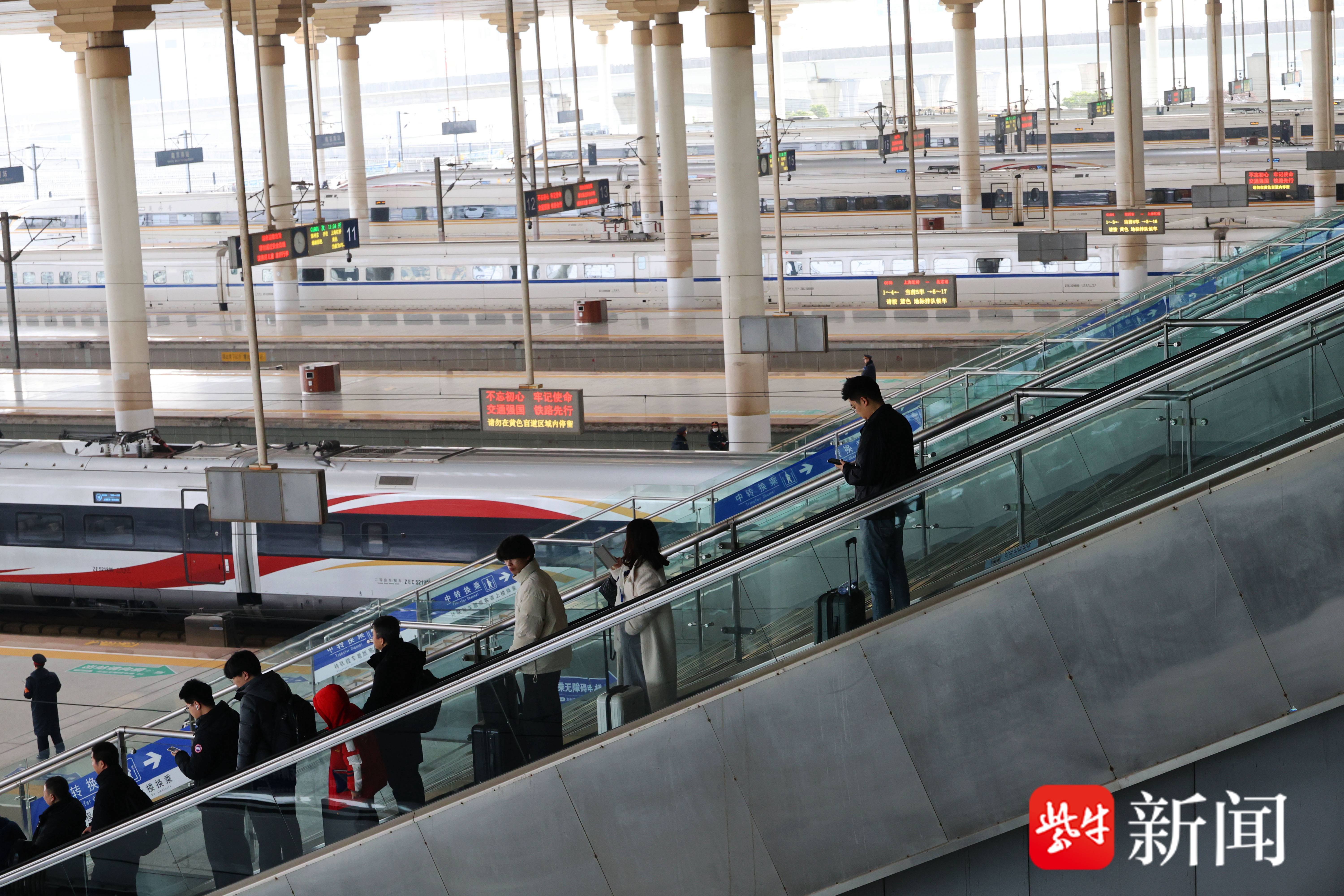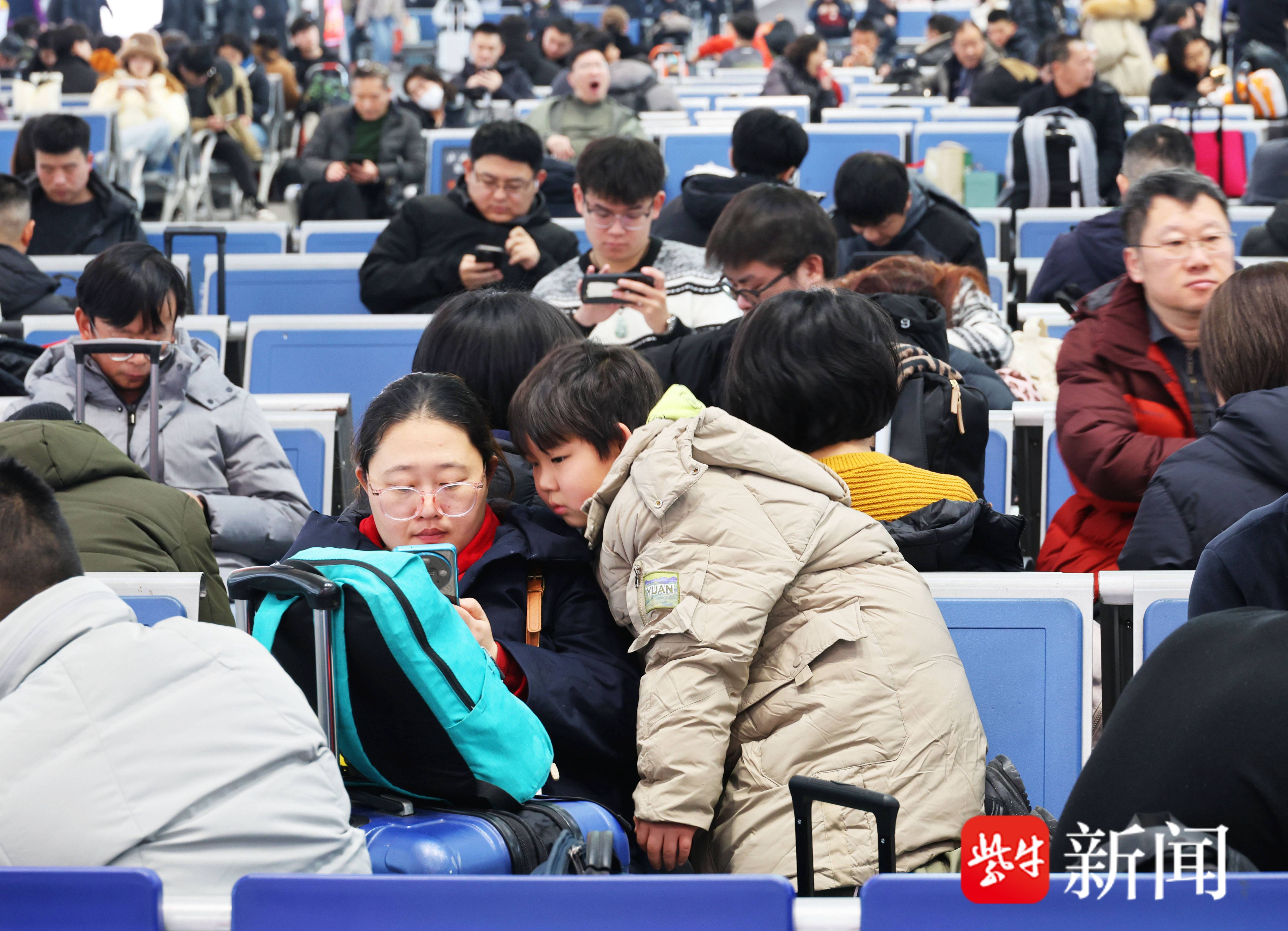 清晨的南京南站,安检口早已排起长队,二楼候车平台上熙熙攘攘,人们拖着塞满年货与思念的行囊,步履匆匆却眼神明亮。不同年龄、不同职业的返乡人,带着各自的故事,在铁轨与车厢的衔接中,奔赴团圆。