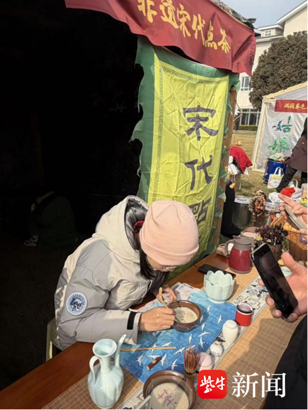 大集不仅是一个购物平台,更成为一个集文化体验与生活服务于一体的多元平台。现场,宋代点茶传承人王文娟展示了传统点茶技艺,民俗抬花轿、中医文化体验、淮安河下古镇名菜名店也纷纷亮相,充分展现了地方文化与非遗魅力。与此同时,活动还融入了企业招聘、反诈宣传等实用服务环节,与作坊文化、淮扬美食等内容相互交织,形式灵活、内容充实,有效丰富了游客的参与体验。