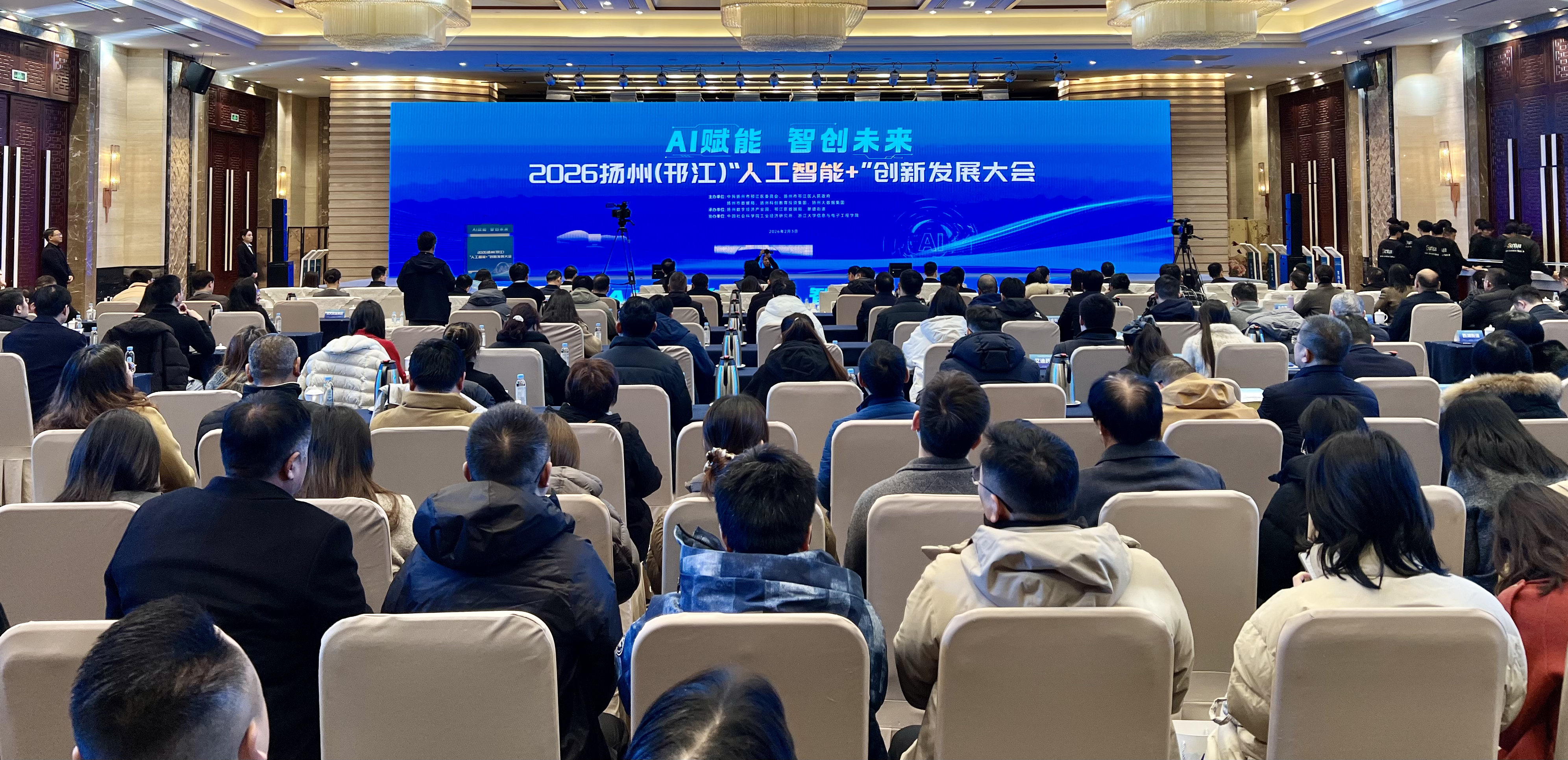 2月3日,扬州会议中心,AI赋能 智创未来——2026扬州(邗江)“人工智能+”创新发展大会在这里举行。活动现场,为5大“人工智能+”赋能平台揭牌,进行党群服务中心、城市书房+OPC融合创新社区启用仪式,进行OPC社区联盟签约,进行AI赋能企业合作签约。带来人工智能行业最新趋势深度分析,带来数字浪潮中的“实战兵法”。