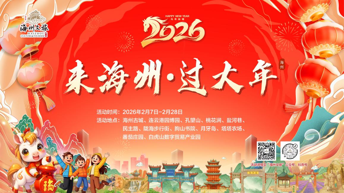 新春将至,连云港市海州区2026年春节文旅活动正式官宣,以“来海州・过大年”为主题,精心筹备31项精彩活动,从腊月二十七持续至正月十五,覆盖民俗体验、文化熏陶、亲子游乐、消费惠民四大板块,遍布海州古城、园博园、孔望山等十余处核心文旅场所,为市民游客奉上一场兼具传统韵味与现代活力的新春文旅盛宴。