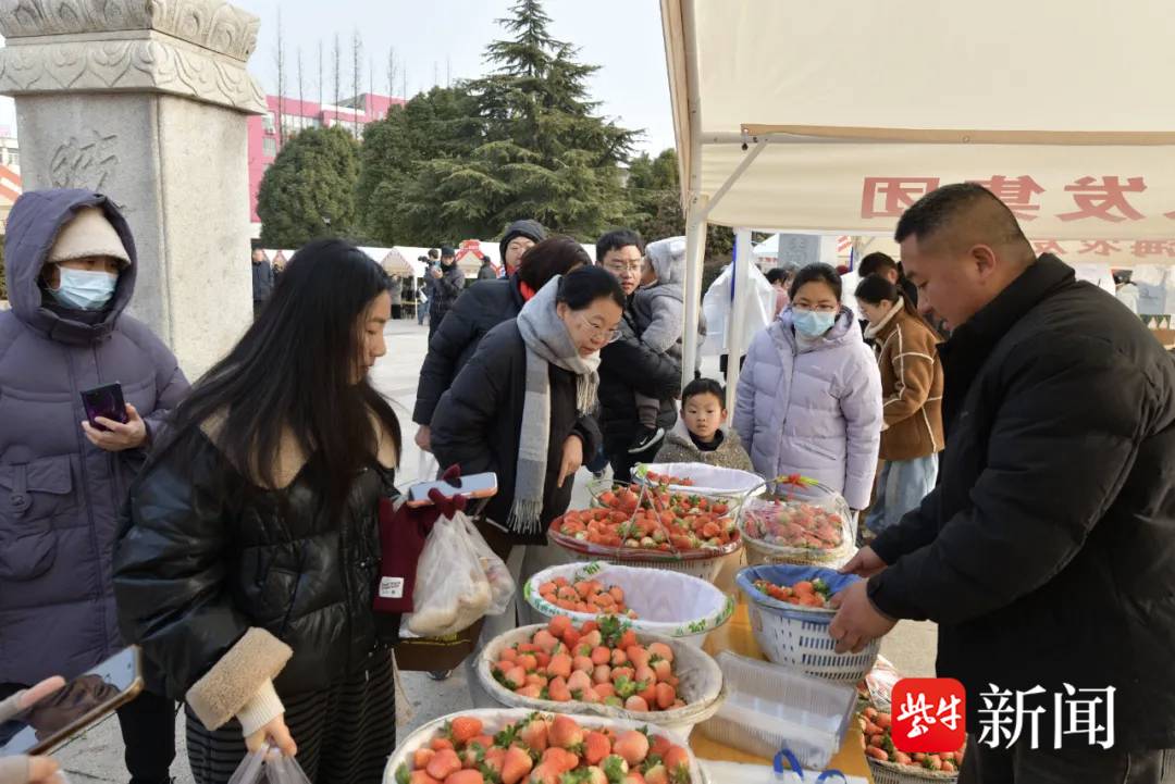“听说这儿办大集,一早就赶过来了。草莓、西红柿都特别新鲜,人多热闹就像过年赶集,摊主们也实在,称足价优,还能先尝后买,很贴心。”市民吴书敏提着刚买的年货,笑意盈盈。
