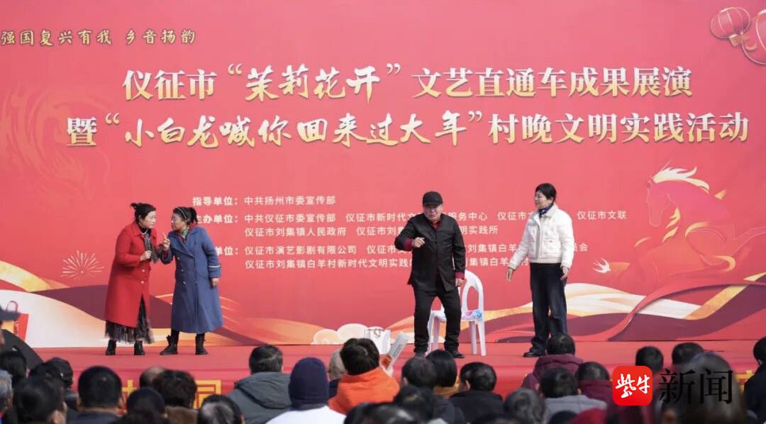 据介绍,过去一年,在扬州、仪征两级市委宣传部指导下,“茉莉花开”文艺直通车满载优质文化资源驶入刘集田间地头。“茉莉花开”文艺直通车是江苏省创新实施的文化惠民工程。"茉莉花开"送来艺术芬芳,在刘集,"小白龙"则承载着独有的乡愁记忆。记者采访获悉,源自"白龙报恩"传说的孝贤文化,与当地新时代文明实践深度融合,让"小白龙喊你回来过大年"成为白羊村的特色文化IP,今年已是第三年举办。这一IP将传说转化为实实在在的乡村吸引力,让村民感受到浓浓年味,还吸引了周边游客前来参与。