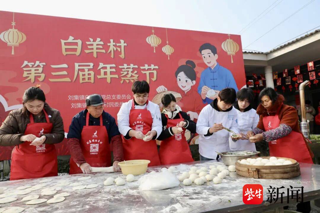 大锅灶整齐排列,传统蒸屉热气腾腾;村民们动手蒸制馒头、包子、方糕,为年味点心点红祈福;年味大集上,腊味咸货、年蒸糕点、果仁炒货等"年味十足"的产品琳琅满目,豆腐皮、赤松茸等本地特色农副产品整齐陈列;"乐玩不停"互动区人气爆棚,趣味游戏吸引男女老少踊跃参与。2月2日,扬州西郊仪征市刘集镇白羊山下白羊村党群服务中心广场,迎来"茉莉花开"文艺直通车行动成果展演暨"小白龙喊你回来过大年"村晚文明实践活动。