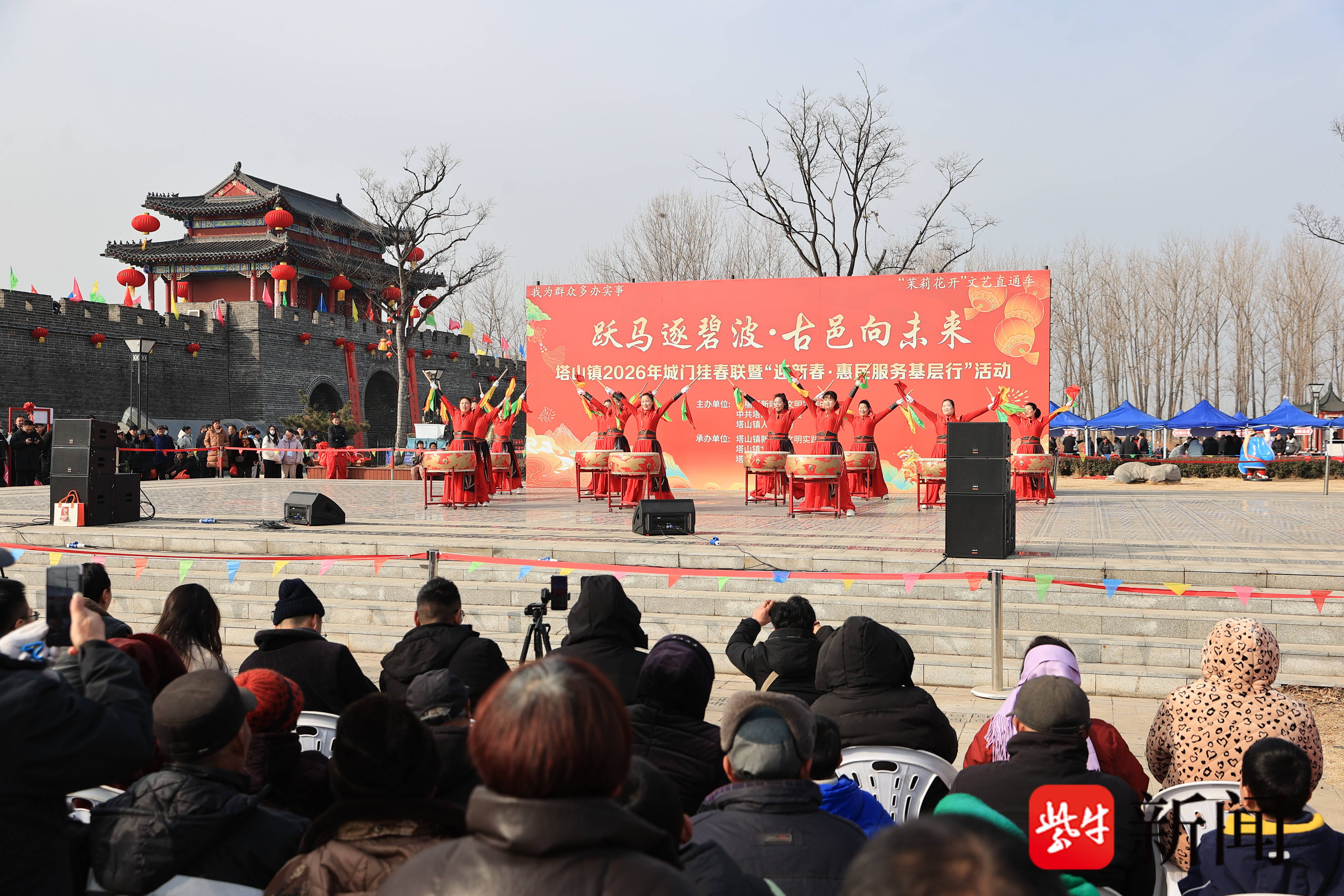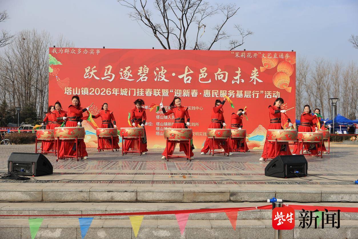 辞旧迎新颂祥瑞,文明相伴暖人心。2月3日,连云港市赣榆区计斤门外锣鼓喧天、暖意融融,随着计斤门上红布缓缓飘落,巨幅春联惊艳亮相,赣榆区新时代文明实践中心联合塔山镇举办的“跃马逐碧波・古邑向未来”暨“迎新春·惠民服务基层行”活动在此盛大启幕。此次活动满载着对新年的美好期许,为群众带来了一场集文艺展演、惠民服务、文化传承于一体的新春盛典,为这座古邑注入了浓浓的新春暖意与文明新风。